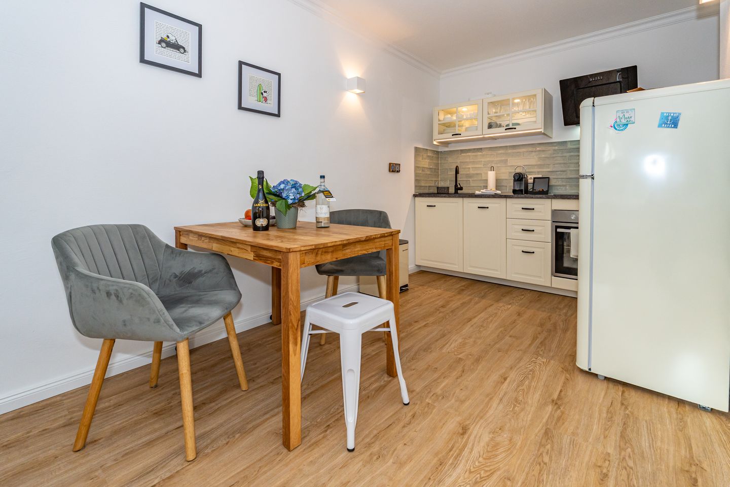 Hier kocht Ihr wie ein Sternekoch – oder zumindest wie jemand, der gerne kocht! Ausgestattet ist die Küchenzeile mit Ceran-Induktions-Kochfeld, Backofen, Geschirrspüler und sogar einer Espressomaschine. Die Kühl-Gefrierkombination bietet Platz für leckere Zutaten, Eiswürfel und natürlich auch für ein Weinchen. Toaster und Wasserkocher sind ebenfalls da – für die perfekten Brötchen oder auch für eure Tee-Rituale.