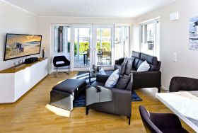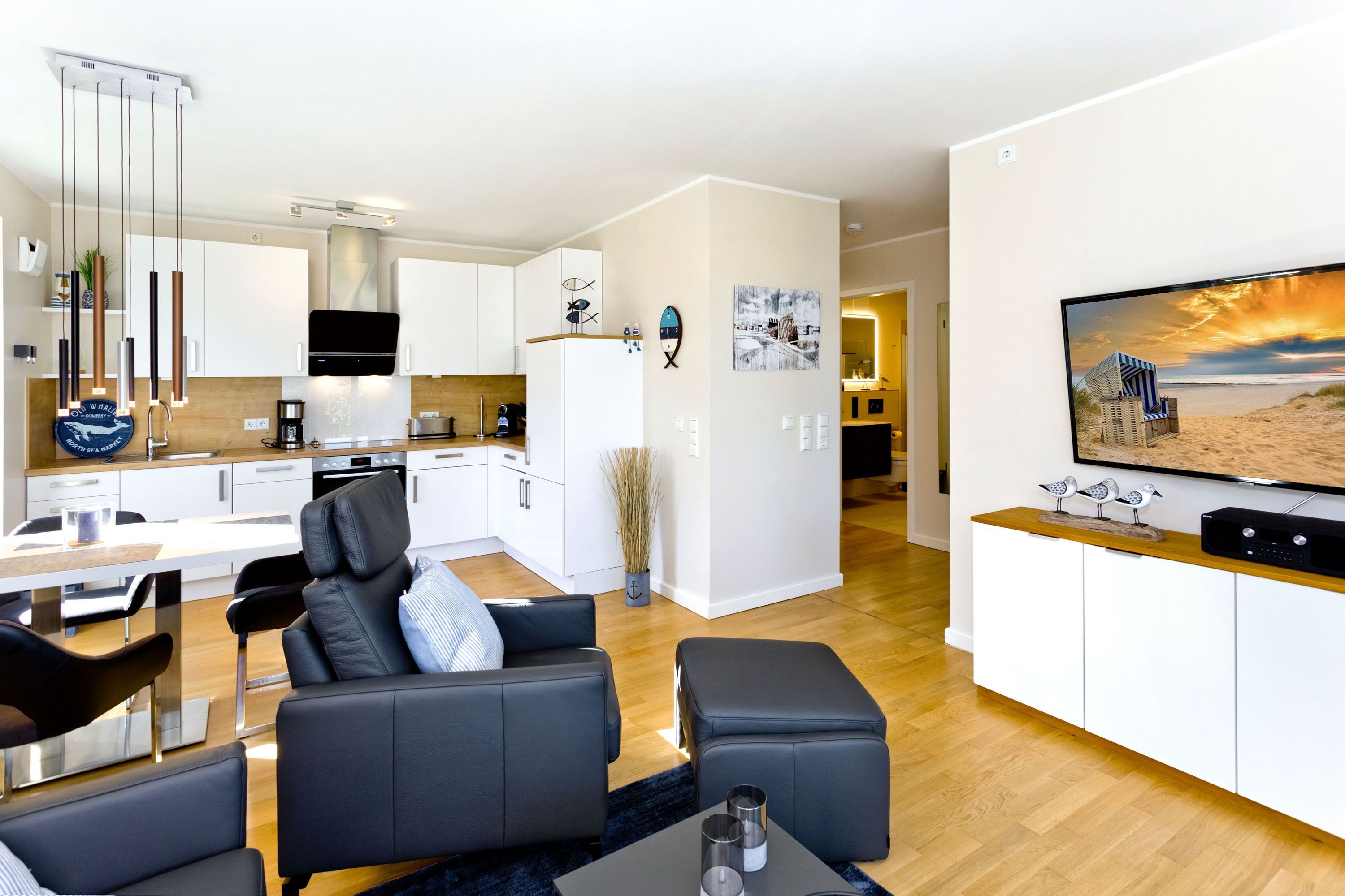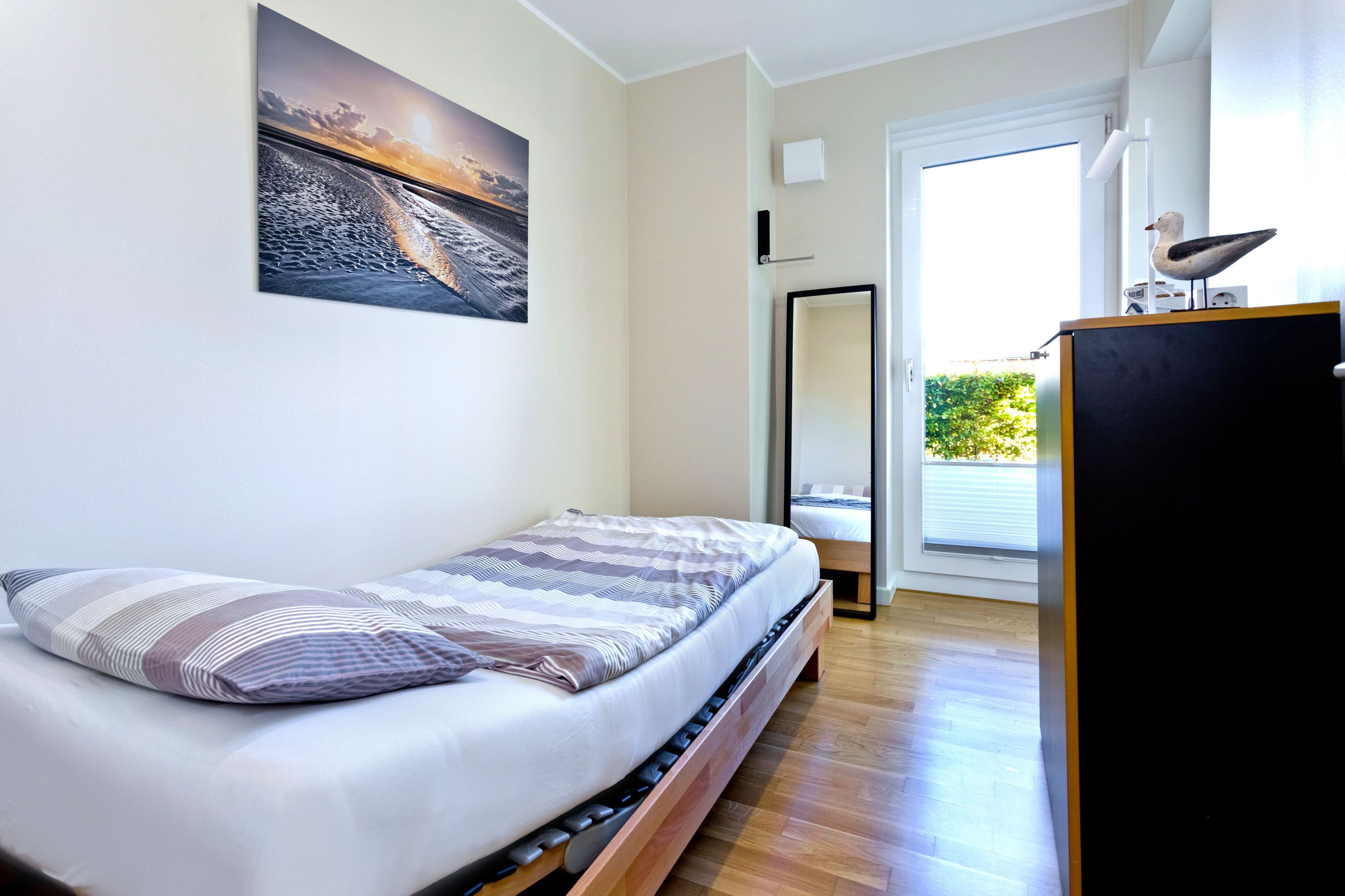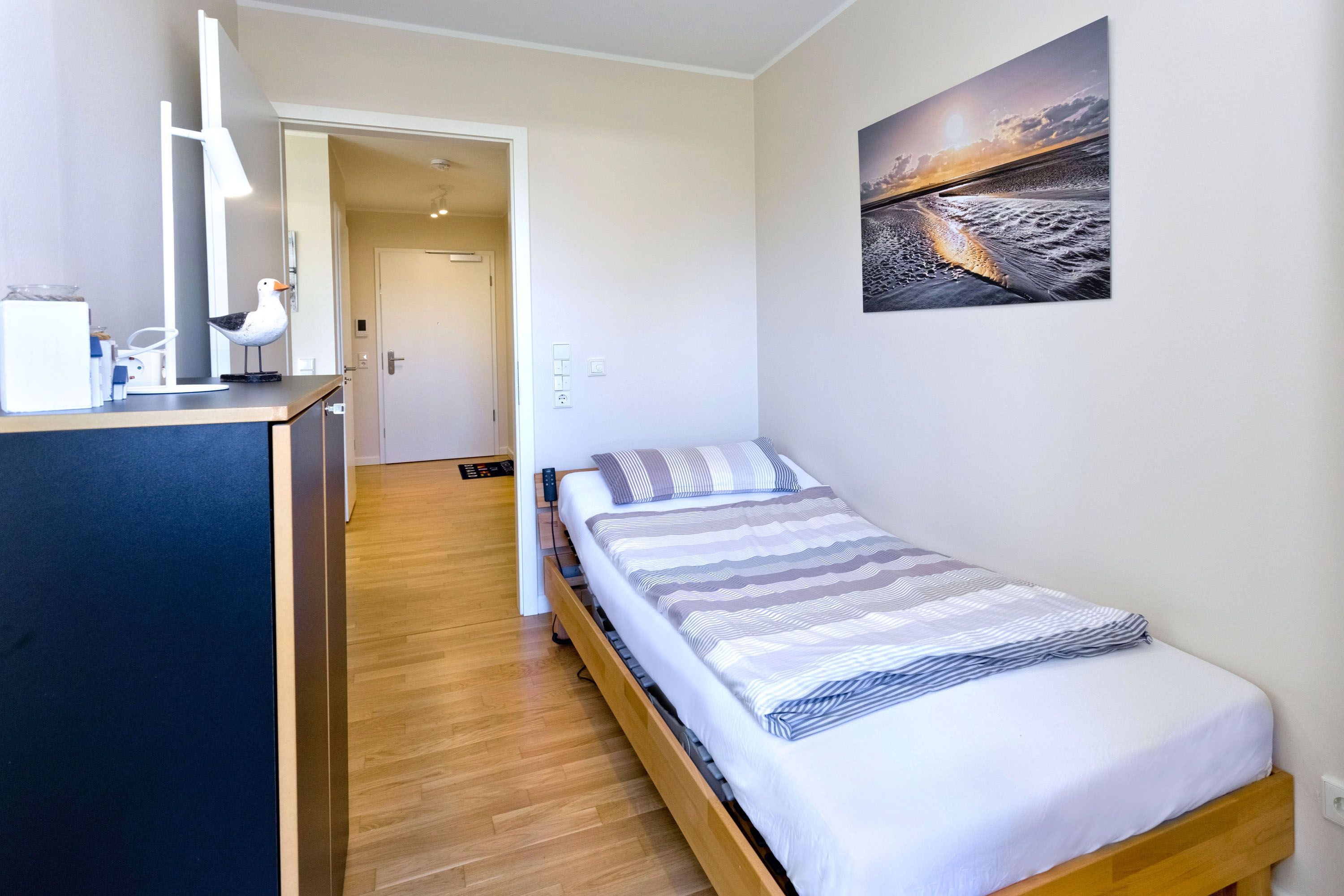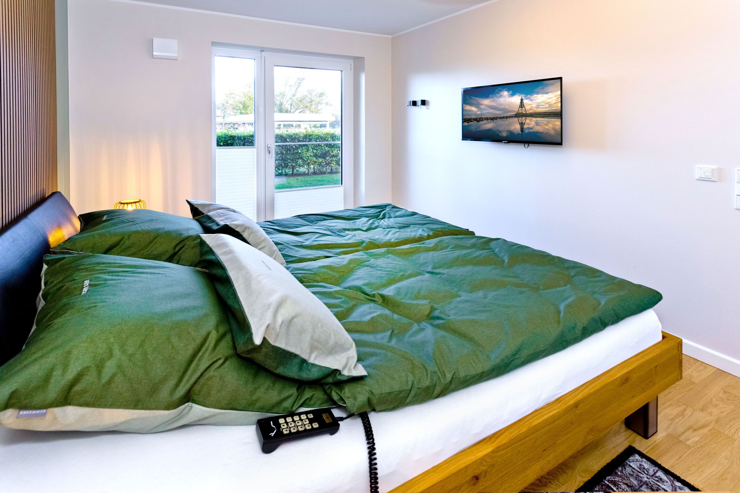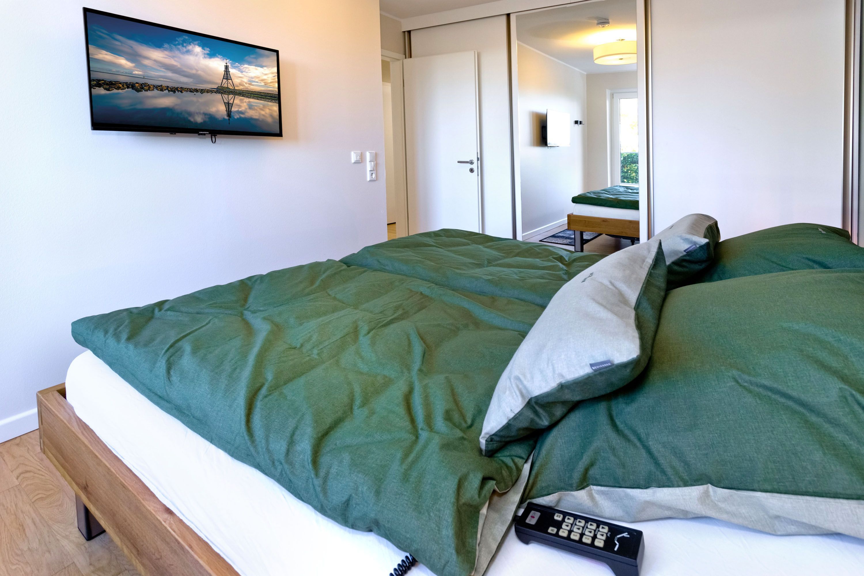 Haus Kapitän Alexander, direkt an der Marina Cuxhaven gelegene Neubauwohnung NEU RENOVIERT und NEU MÖBLIERT Oktober 2024 ca. 78m². Tolle 3 Zimmer-Luxus-Wohnung im Erdgeschoss für max. 3 Pers. ausgestattet. Großzügiges Wohnzimmer mit Terrasse (nord/ost). Die Terrasse ist teilweise windgeschützt als Loggia zu nutzen. Vollständig ausgestattete Küchenzeile, 1 Schlafzimmer mit Doppelbett (RÖWA Lattenrost elektr. verstellbar) und TV, Fliegengitter und großem Einbauschrank, 1 Schlafzimmer mit Einzelbett (Lattenrost elektr. verstellbar). Alle Räume sind über elektr. Außenjalousien zu verdunkeln. Fußbodenheizung, Kostenfreies W-Lan-Internet, Kabel-TV und Magenta TV, Nespresso Maschine, barrierefreie Dusche/WC, Miele-Waschmaschine und Miele-Trockner in der Wohnung. Reservierter Pkw-Stellplatz im Carport #8, Fahrradkeller, Nichtraucher und es sind keine Haustiere gestattet.