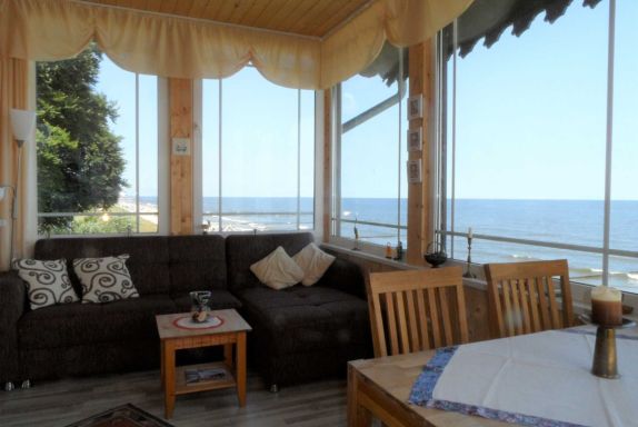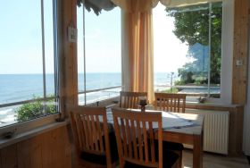 Hier können Sie das Meer rauschen hören! Das Haus Anneliese liegt in einmaliger Lage direkt am Strand von Stubbenfelde. Die gemütlichen Ferienwohnungen befinden sich im Hochpaterre und im Dachgeschoss und haben dadurch, dass das Haus auf einem Berg liegt, einen fantastischen Panoramameerblick.