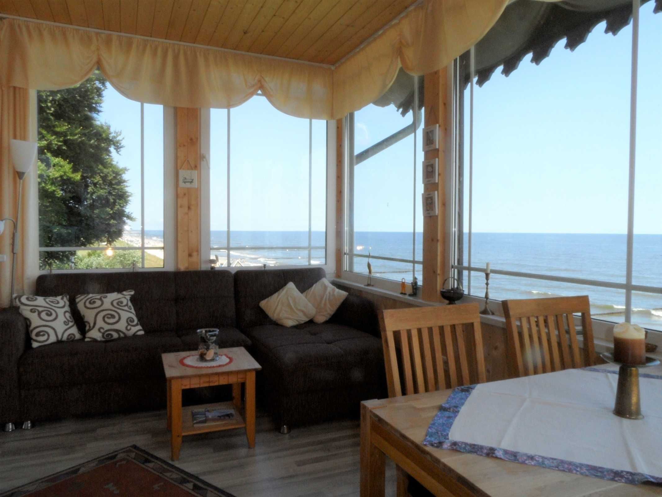 Die 2-Raum-Ferienwohnung liegt im Hochparterre des Hauses Anneliese und verfügt über einen separaten Eingang über die Veranda. Die Veranda mit großen Panoramafenstern ermöglicht einen wunderschönen Blick auf die Ostsee. Darin stehen eine gemütliche Couchsitzgruppe und ein Esstisch mit 4 Stühlen sowie ein Flat- TV und ein Radio mit CD-Player zur Verfügung. Die offene Küchenzeile ist mit einem 2 Plattenherd, Kühlschrank mit Gefrierfach, Spüle, Kaffeemaschine, Wasserkocher und Toaster ausgestattet, außerdem wird Ihnen Fit, Schwamm, Spültuch und Geschirrhandtuch zur Verfügung gestellt. Das erste der zwei Schlafzimmer ist mit einem Doppelbett und einem Kleiderschrank eingerichtet, das zweite Schlafzimmer mit zwei Einzelbetten(ideal für Kinder) Das Badezimmer vergfügt über Dusche/WC und Haartrockner.