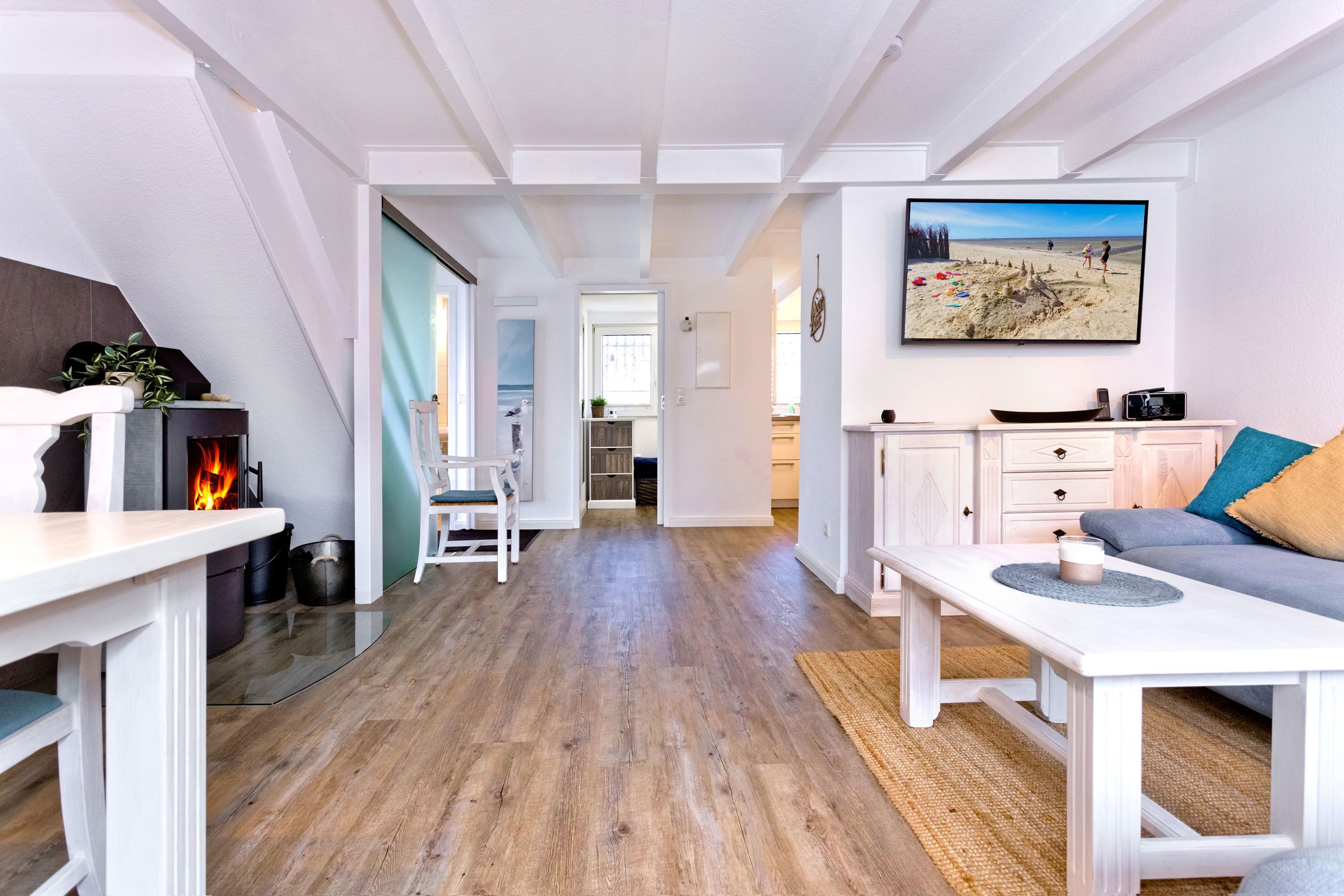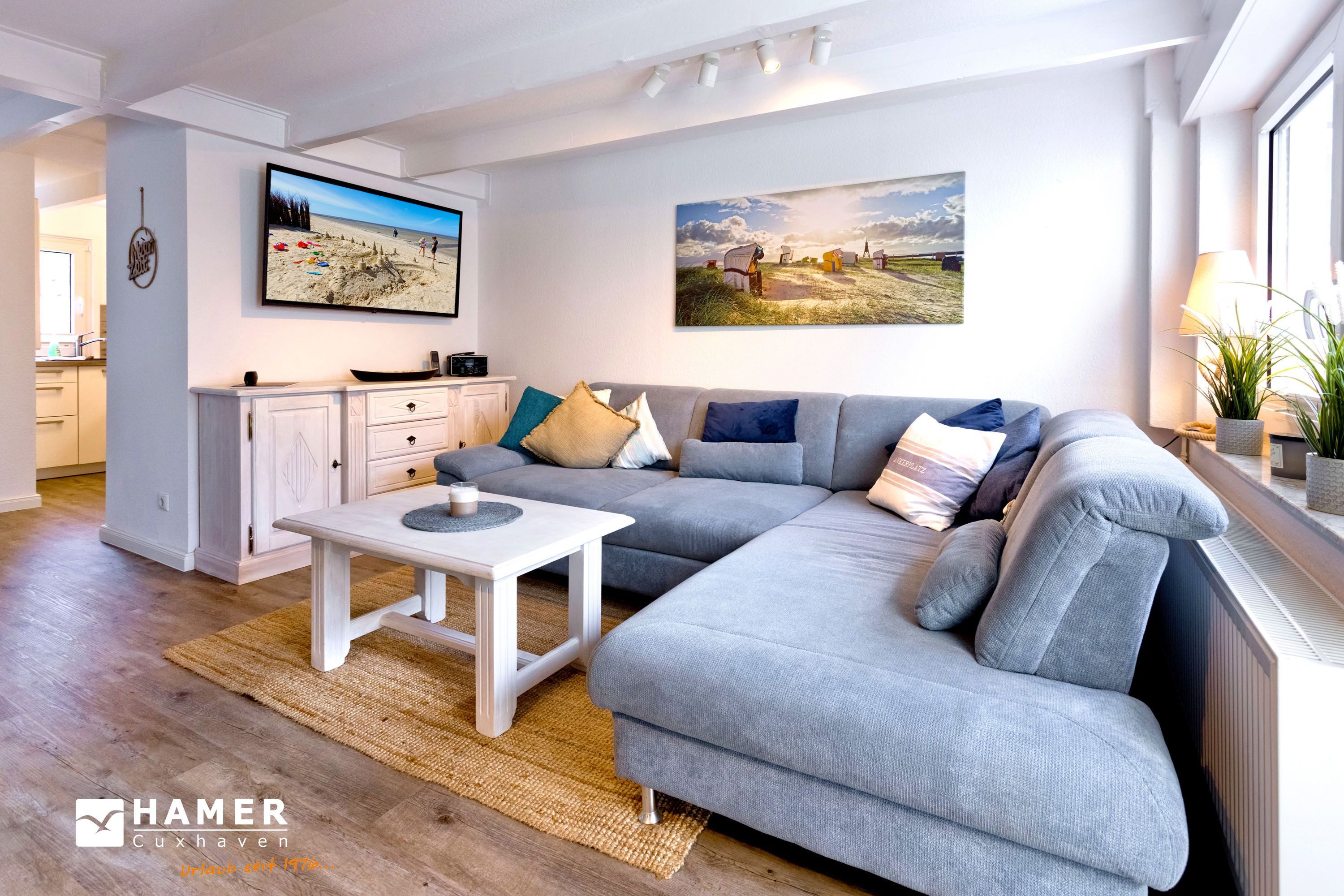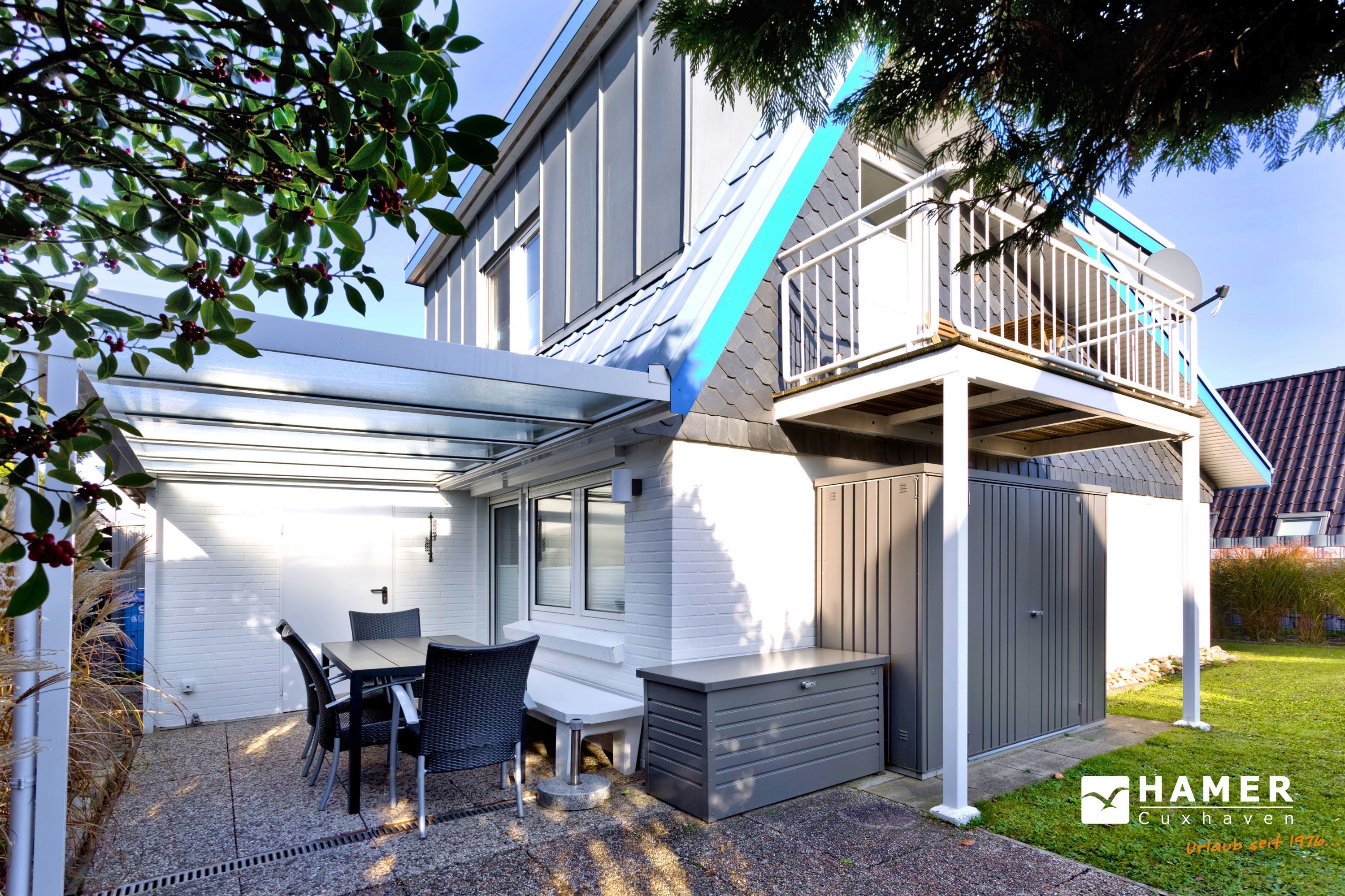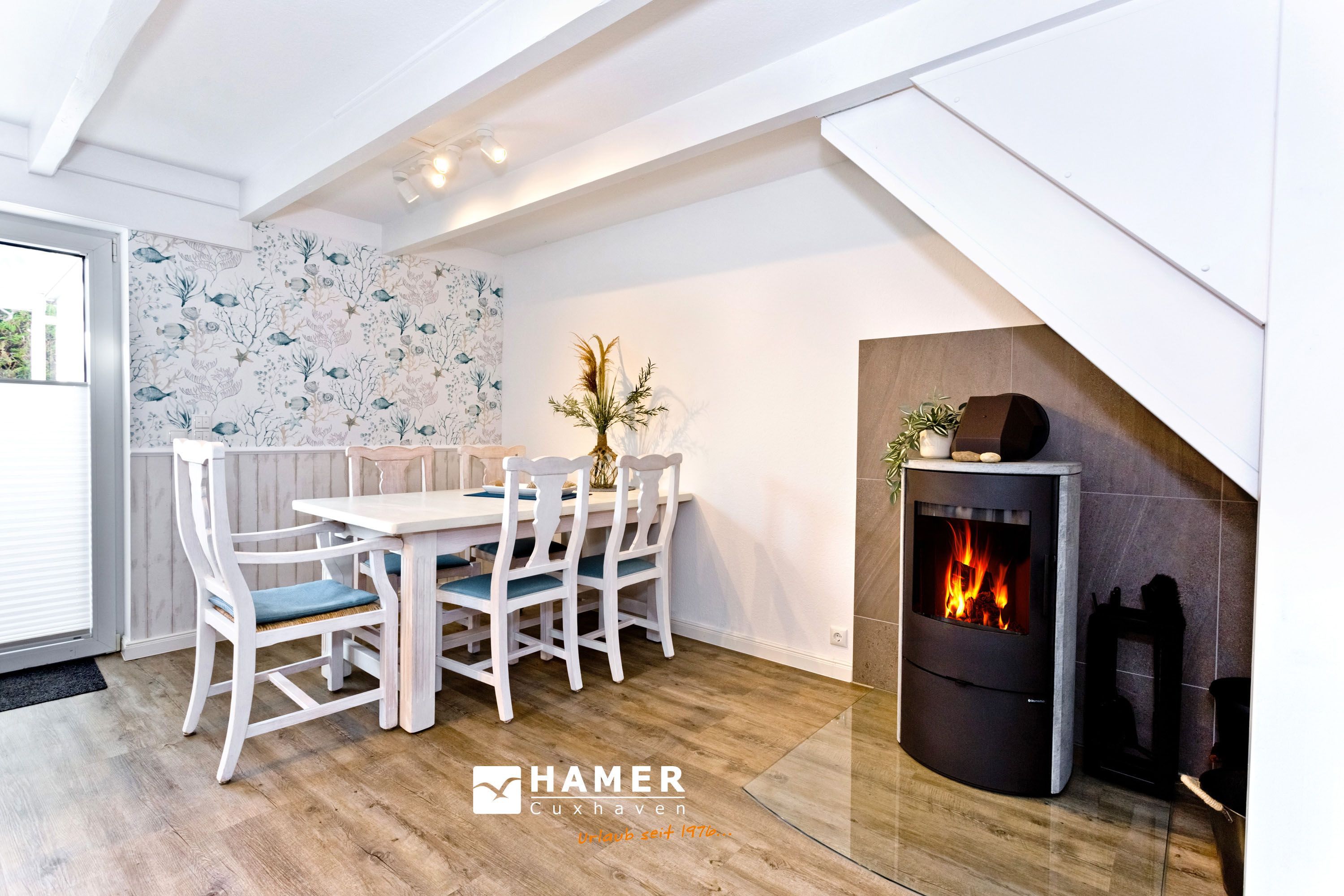 Tolles und aufwendig saniertes Ferienhaus am Rande der Duhner Heide gelegen über ca. 80m² (auf 250m² Grundstück), vollständig bis max. 5 Pers. ausgestattet. 2 Schlafzimmer (1x Doppelbetten, 1x ausziehbares Doppelbett, 1x Einzel 90x200 ausziehbare Récamiere mit Topper), schönes Wohnzimmer mit Kaminofen (kein Holz vor Ort - Nutzung auf eigene Gefahr), SAT-TV, vollständig ausgestattete Küchenzeile (Backofen, Geschirrspüler, Mikrowelle, großes Gefrierfach), große Terrasse (überdacht), kostenloses W-LAN Internet, 1xDu/WC, 1xGäste-WC, eigene Waschmaschine, Flur, Nichtraucher, keine Haustiere, Pkw-Stellplatz am Grundstück. Im Sommer steht ein Bäckerwagen in ca. 350m Entfernung.