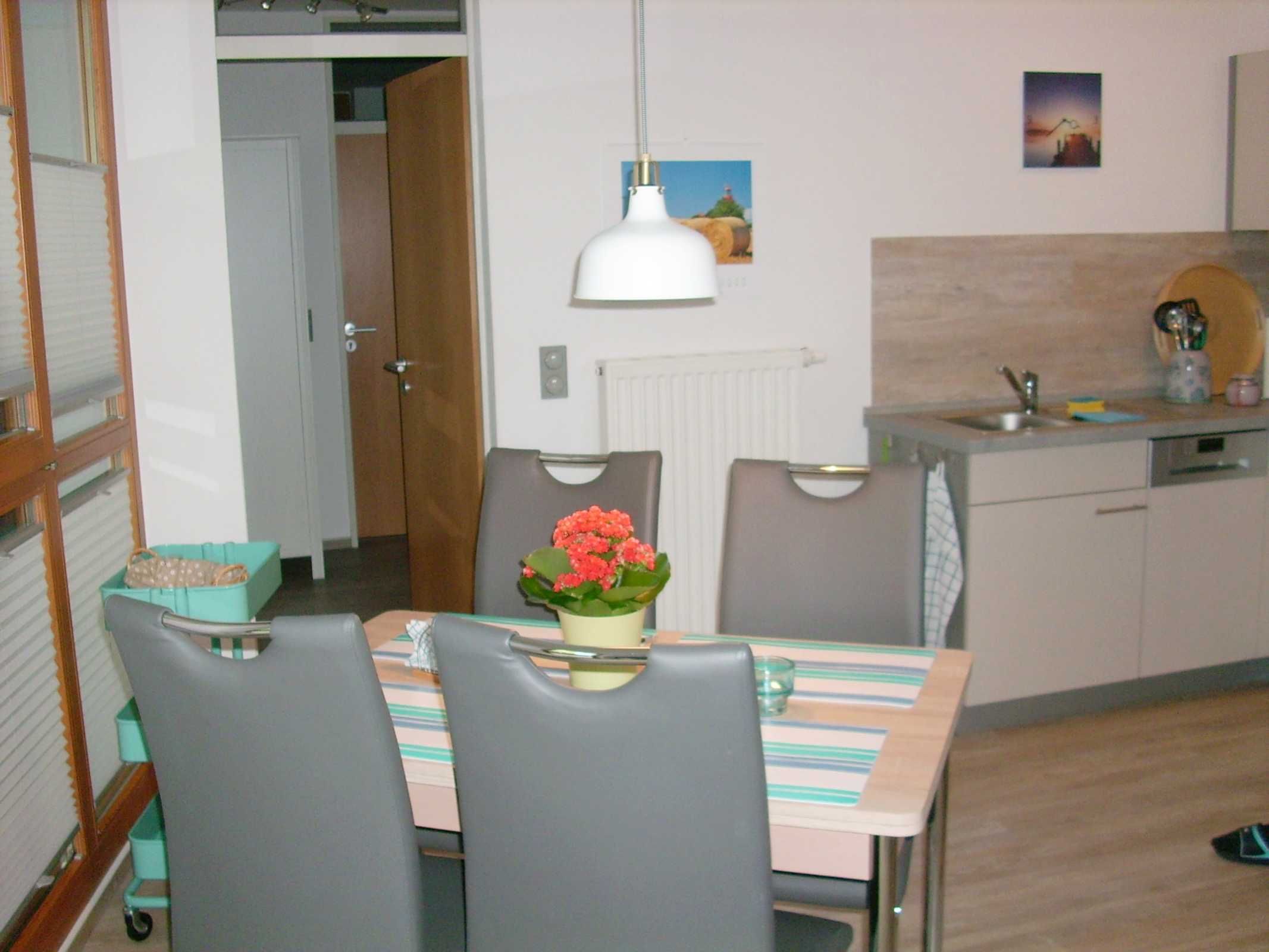 Die Ferienwohnung ist komfortabel und modern eingerichtet. Durch die Süd- Ausrichtung ist die Wohnung hell, wirkt einladend und freundlich. Auf der vorgelagerten Terrasse kann man von früh bis spät Sonne genießen. Ein zugehöriger kostenloser PKW- Stellplatz befindet sich direkt neben dem Gebäude (auch Einfahrt zum öffentlichen kostenpflichtigen Parkplatz).