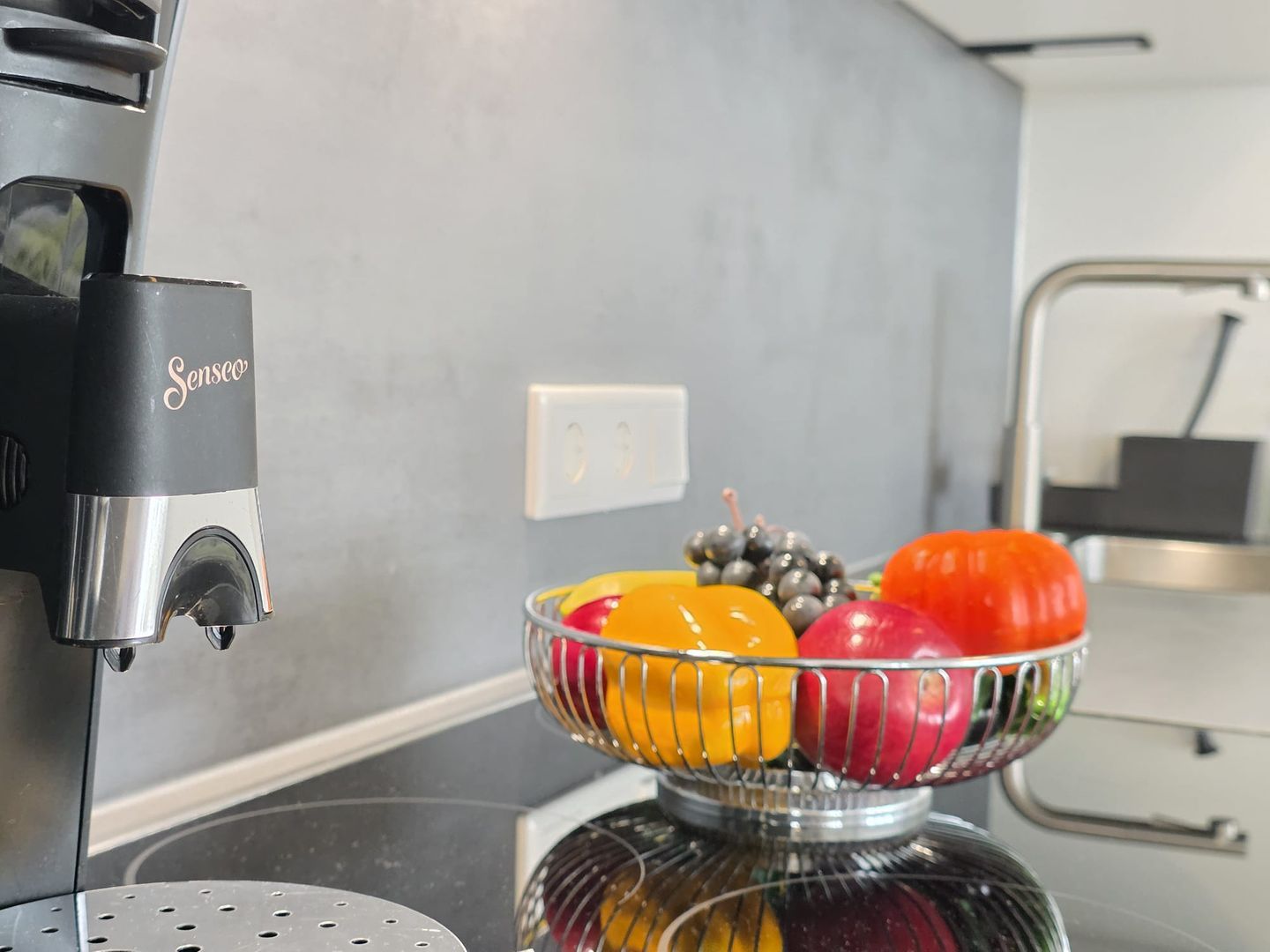 Die voll ausgestattete Küche ermöglicht Ihnen eine flexible und komfortable Selbstverpflegung. Herd, Backofen, Geschirrspüler, Kühlschrank und Kaffeemaschine stehen bereit, sodass Sie auch im Urlaub nicht auf gewohnten Komfort verzichten müssen.