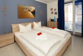 Im Schlafzimmer steht neben dem Bett ein großer Kleiderschrank mit genügend Platz für Ihre Urlaubsgarderobe zur Verfügung. Der Balkon ist möbliert und wird gerne von unseren Gästen genutzt um den Tag unter freiem Himmel bei einem Gläschen Wein ausklingen zu lassen.
