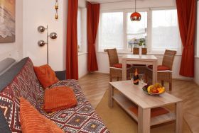 Freundliche, helle Räume, kräftige Wandfarben und moderne Möbel lassen dieses schöne 2-Raum Appartement zu einem wahren Wohlfühlort für Ihren Urlaub auf der Sonneninsel Usedom werden.
