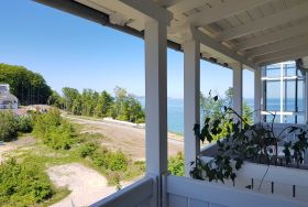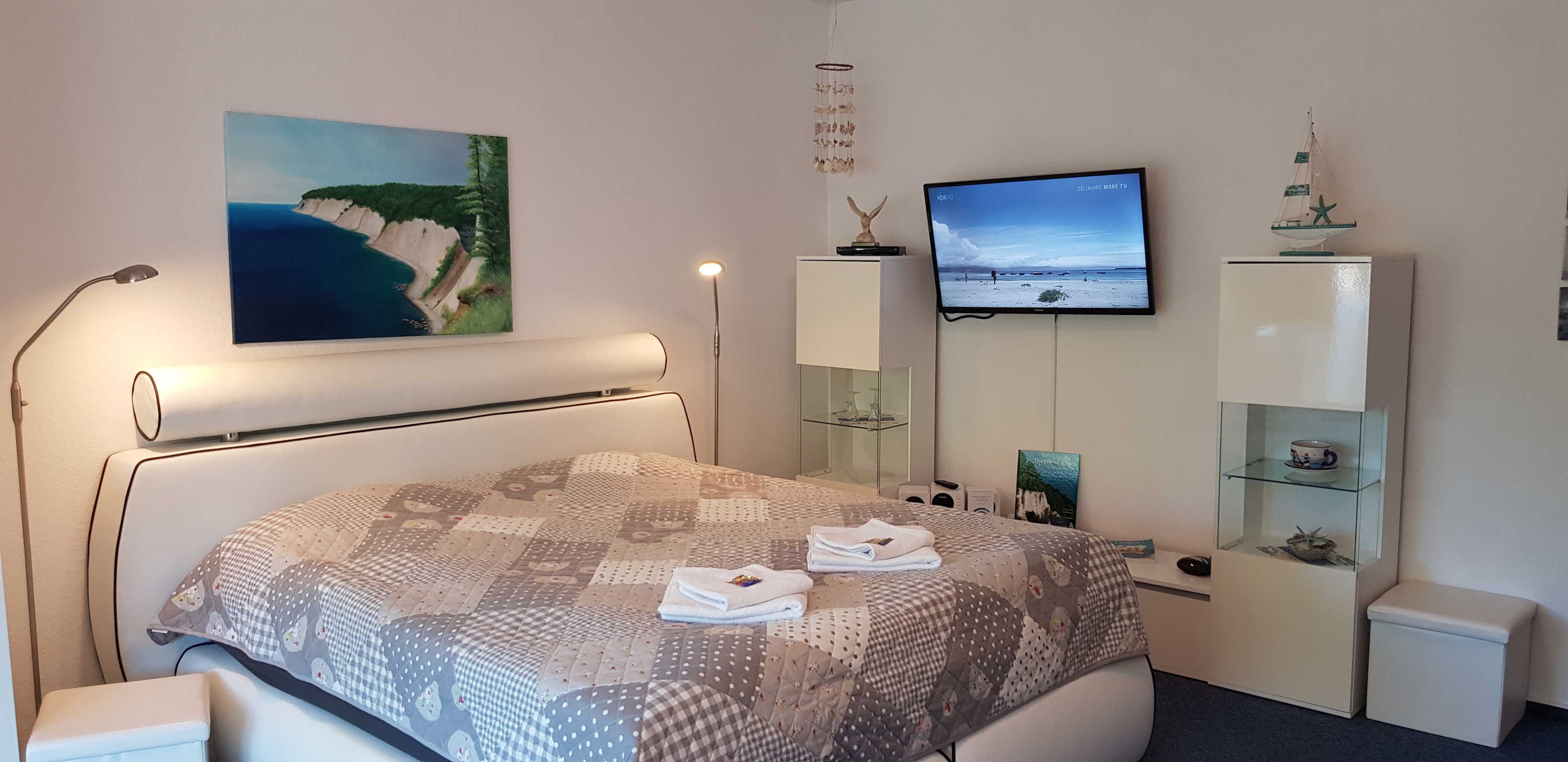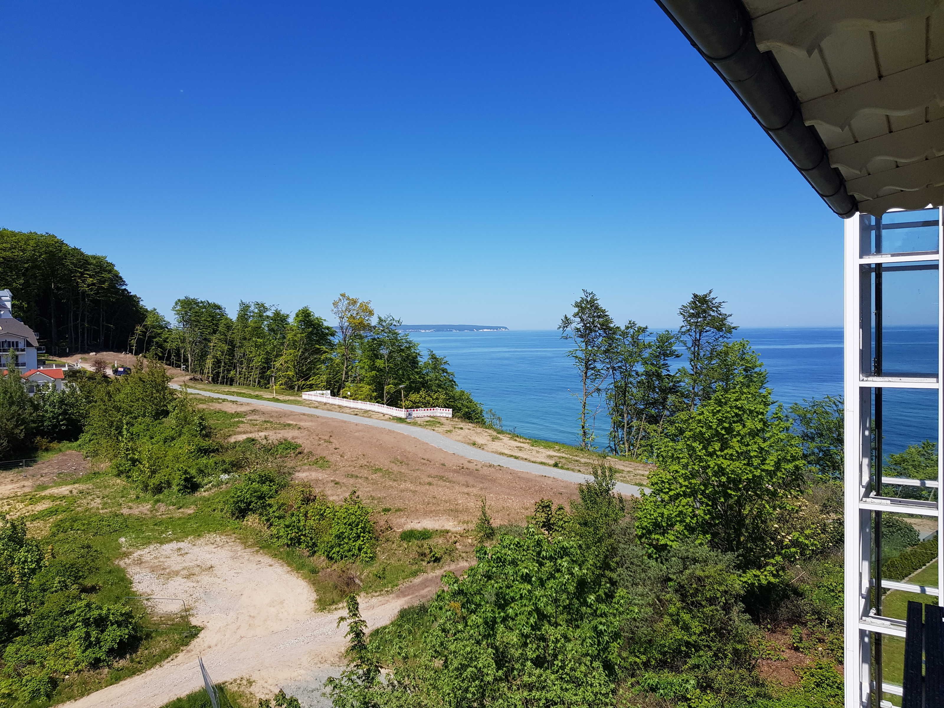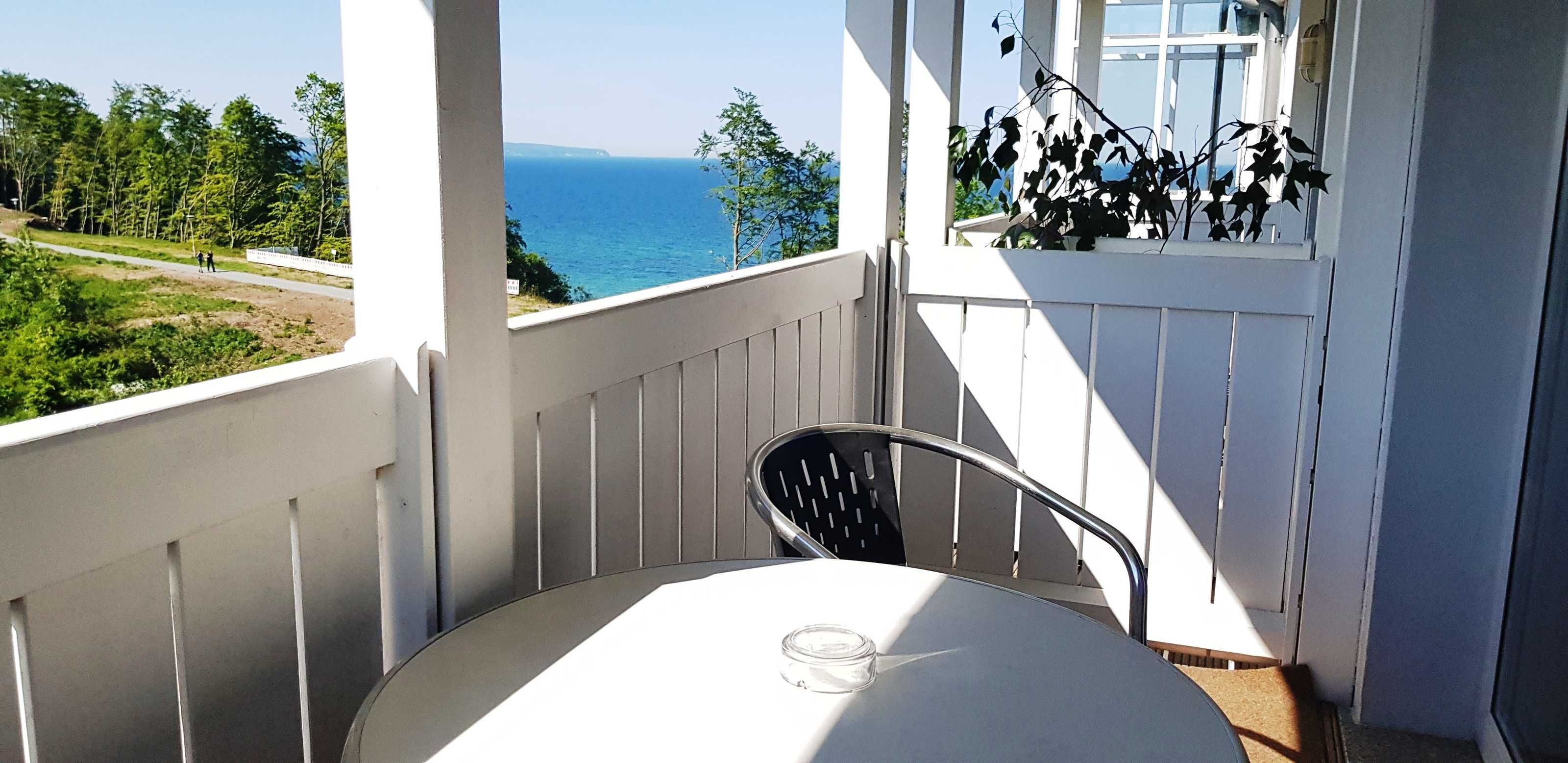 Vom Balkon haben sie einen seitlichen Ostseeblick auf die Kreidefelsen.