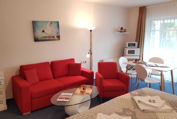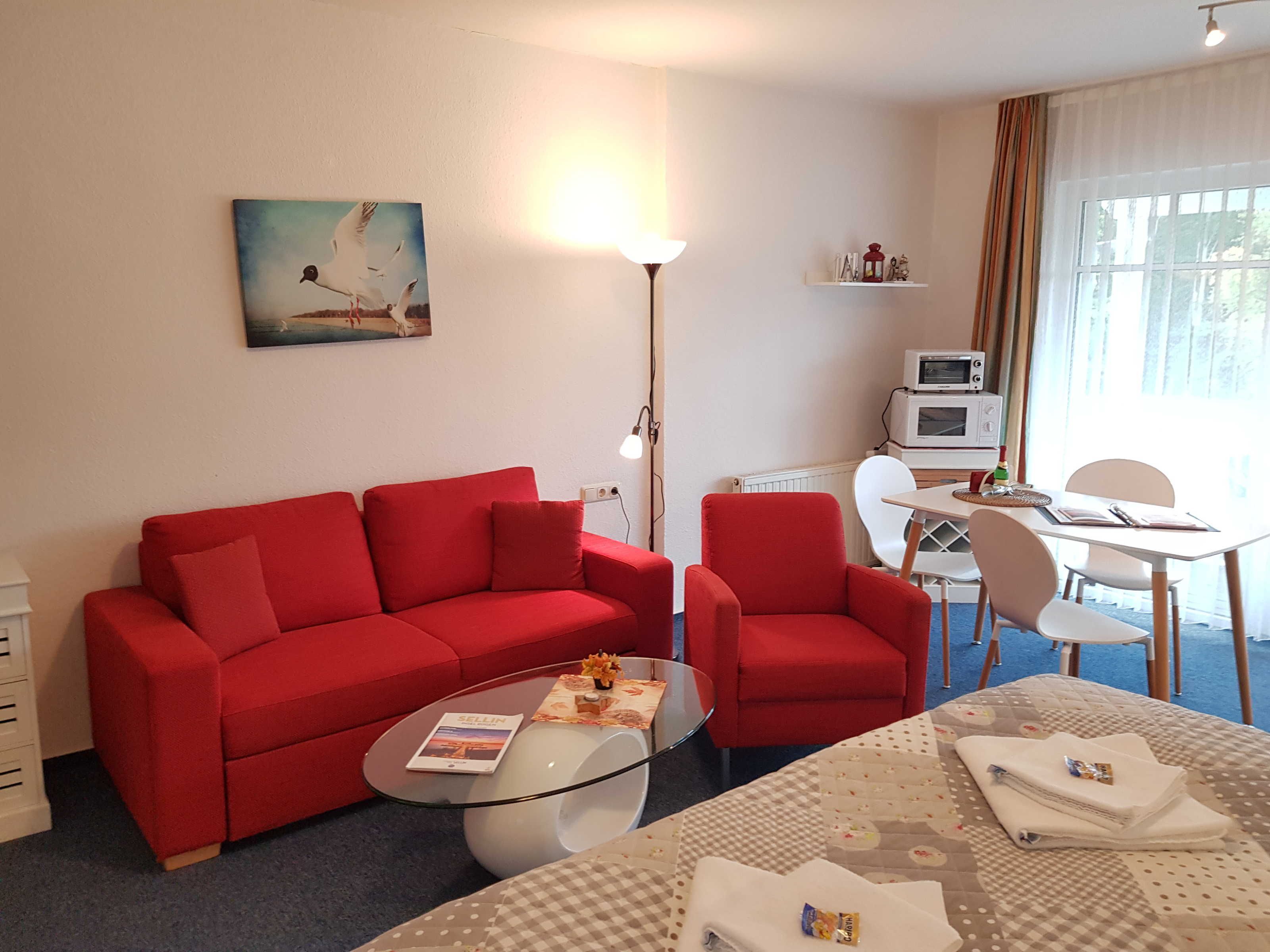 Die Residenz Seeblick ist ein modernes, im Bäderstil saniertes Appartementhaus direkt an der Ostsee. Es steht Ihnen ein Studio mit Balkon und Abendsonne in bevorzugter Lage zur Verfügung. Nur wenige Meter zur Seebrücke, dem Wahrzeichen von Sellin sprechen für sich. Alle Wohnungen errreichen Sie barrierefrei mit einen Glasaufzug . Freies W-Lan inklusive.Die Appartements sind modern ausgestattet und verfügen über eine gut bestückte Küchenzeile mit Geschirrspüler. Im Zimmer steht Ihnen Kabel-Smart TV und Stereoanlage mit CD Spieler zu Verfügung. Unterstellmöglichkeiten für Ihre Fahrräder befinden sich im und am Haus . Für Ihr Auto steht ein Parkplatz zur verfügung. Einen möblierten Balkon mit Ostseeblick. Eine Sauna mit Ruheraum sowie Waschmaschine und Trockner stehen Ihnen in den Gemeinschaftsräumen im Haus gegen Gebühr zur Verfügung.