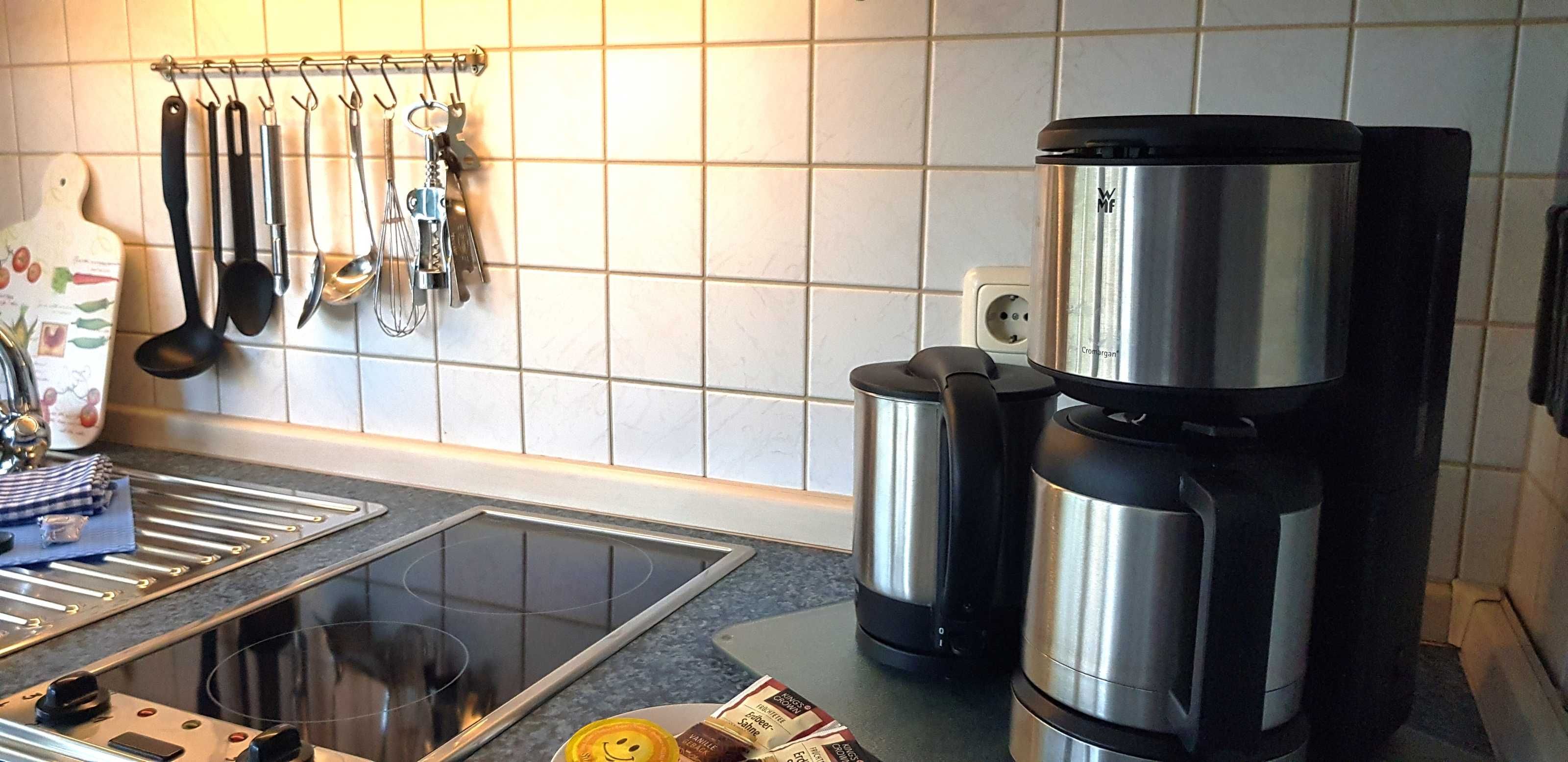 Die Einrichtung mit eine Miniküche ( 2-Pl.-Ceran Kochfeld , Kühlschrank,Geschirrspüler, Kaffeemaschine, Wasserkocher, Mikrowelle, etc.) , DU/WC, Kabel-TV und das gemütliche Flair haben laden zum wohlfühlen ein.