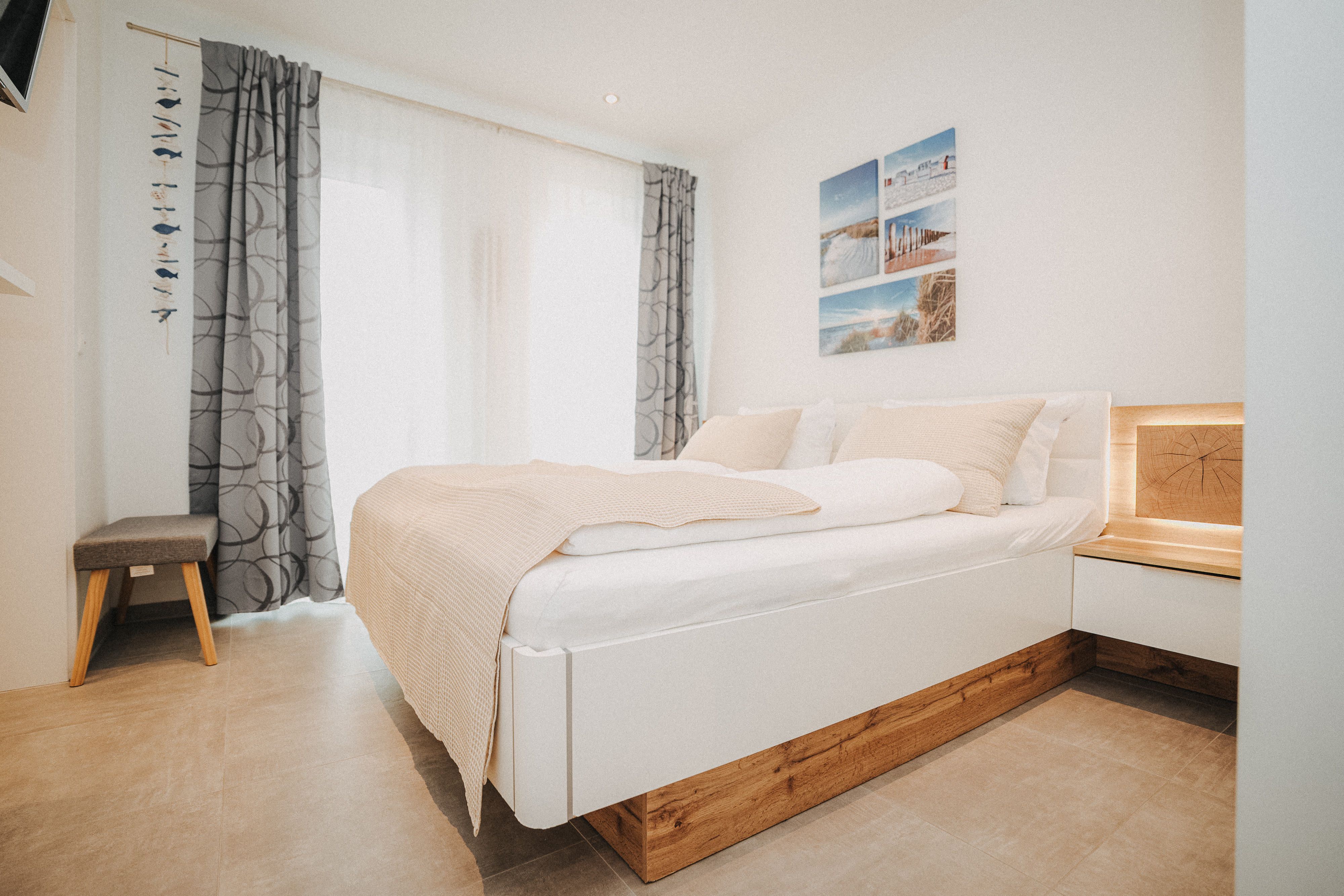 Willkommen! Es empfängt Sie ein heller Eingangsbereich mit Flur und Garderobe. Stärken Sie sich in der voll ausgestatteten Küchenzeile mit Essbereich - Entspannung finden Sie im integrierten Wohnbereich - Ziehen Sie sich zurück ins Schlafzimmer mit Doppelbett , Kleiderschrank und zusätzlichem Flat-TV. Von hier aus gelangen Sie in das komfortable Duschbad mit Flacheinstieg und Regendusche - Relaxen Sie auf dem Balkon mit Mobiliar - Es steht Ihnen ein geräumiger Abstellraum zur Verfügung. Hier befinden sich Waschmaschine und Trockner. Eine steilere Treppe führt hinauf auf die Empore mit einem weiteren Doppelbett.
