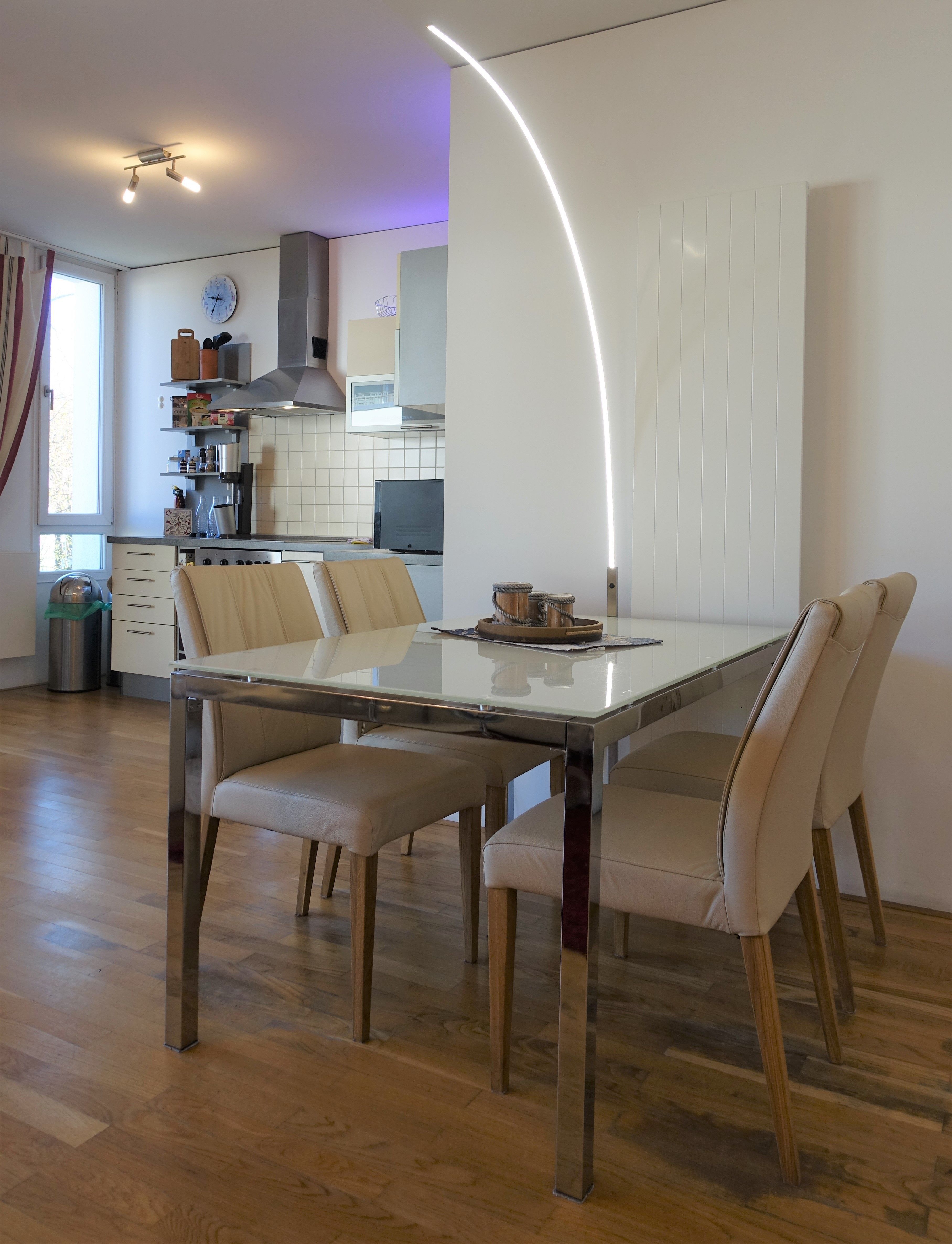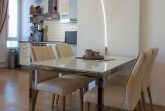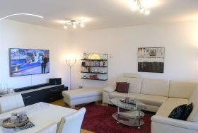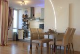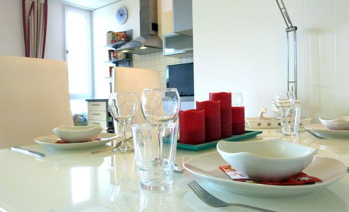 Die Ferienwohnung befindet sich im 2. Stock. Eine große Balkonterrasse und der grüne Garten vor der Residenz sind durch bodentiefe Fenster zu sehen. Sie können die schöne Atmosphäre dieser Wohnung genießen.