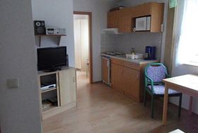 Ausstattung: Kombinierte Wohnküche mit Farb-TV,Radio,Couchgarnitur als Aufbettung f.2 Pers.möglich, Fußbodenheizung, Schlafraum mit Doppelbett und Garderobenschrank.Küchenzeile mit Kochgelegenheit,Kühlschrank,Mikrowelle,Kaffeemaschine u. Geschirr. Bettwäsche und Handtücher können mit einem Aufpreis von 10 Euro pro Person ausgeliehen werden. Parkplatz am Haus.