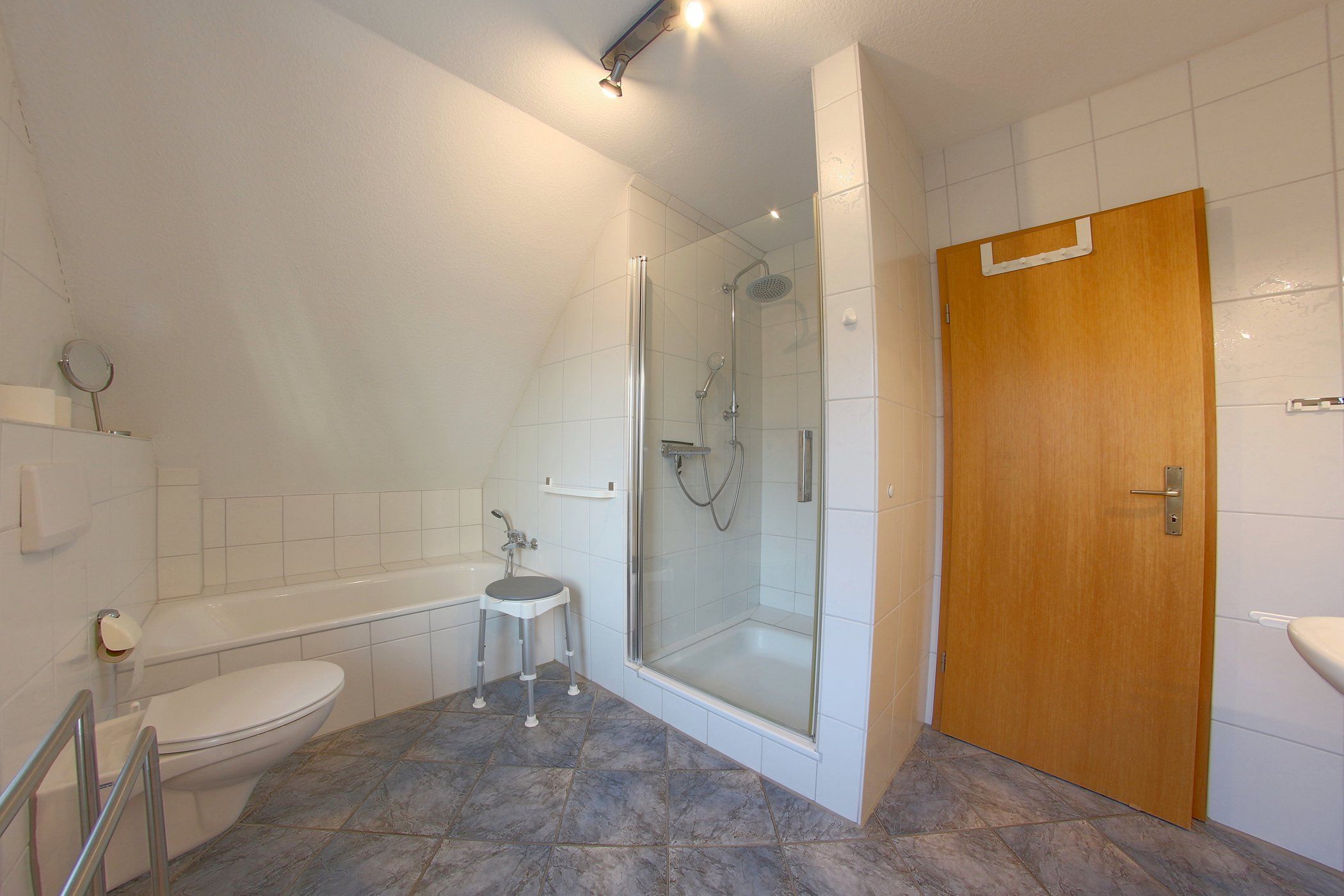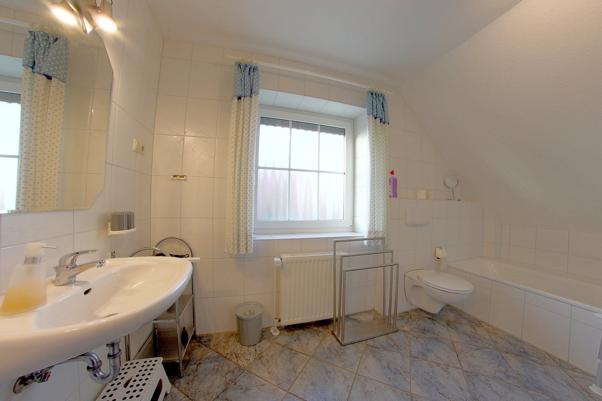 Ein WC im Erdgeschoß und ein Vollbad im Obergeschoß, Waschmaschine, Kinderbett und Hochstuhl stehen für unsere Gäste bereit.