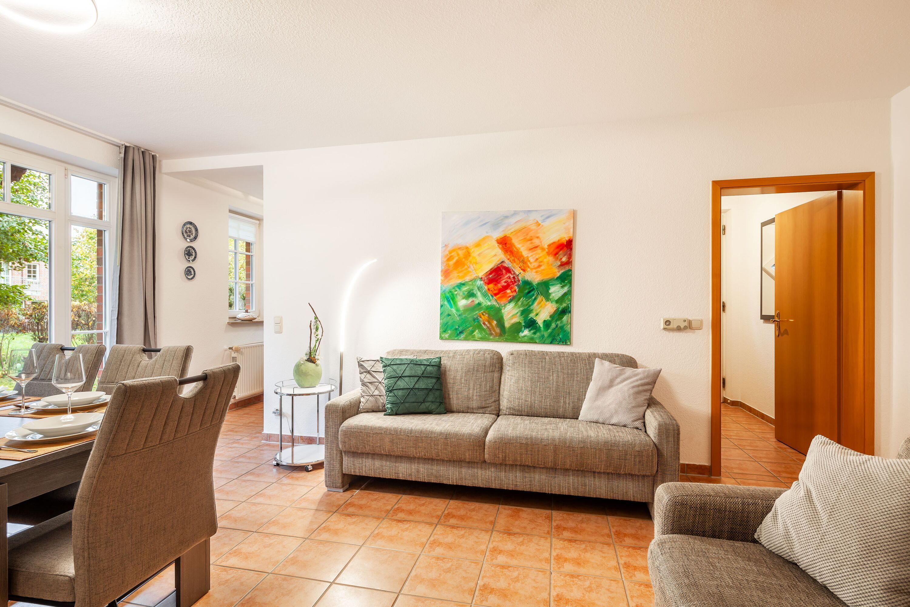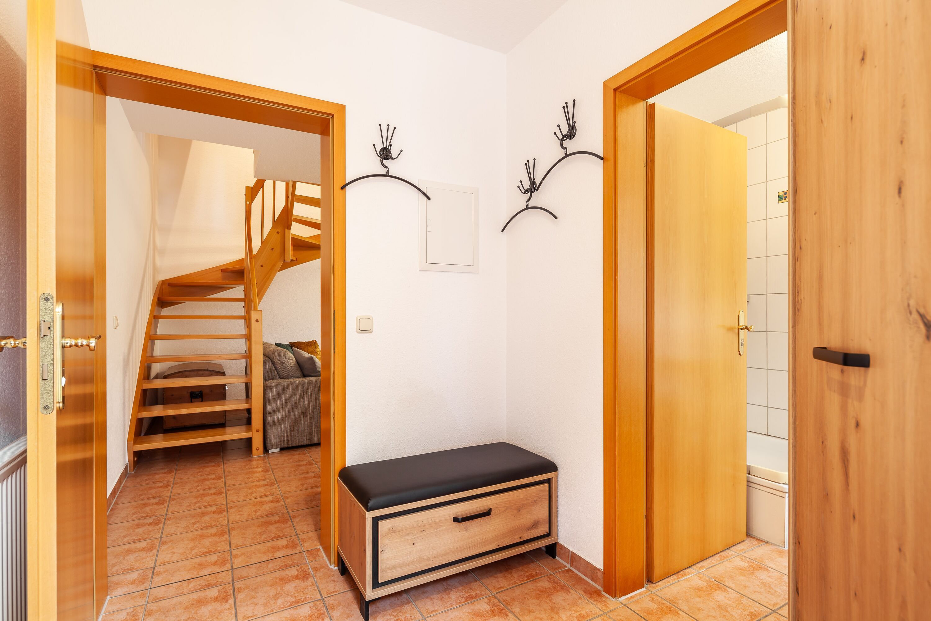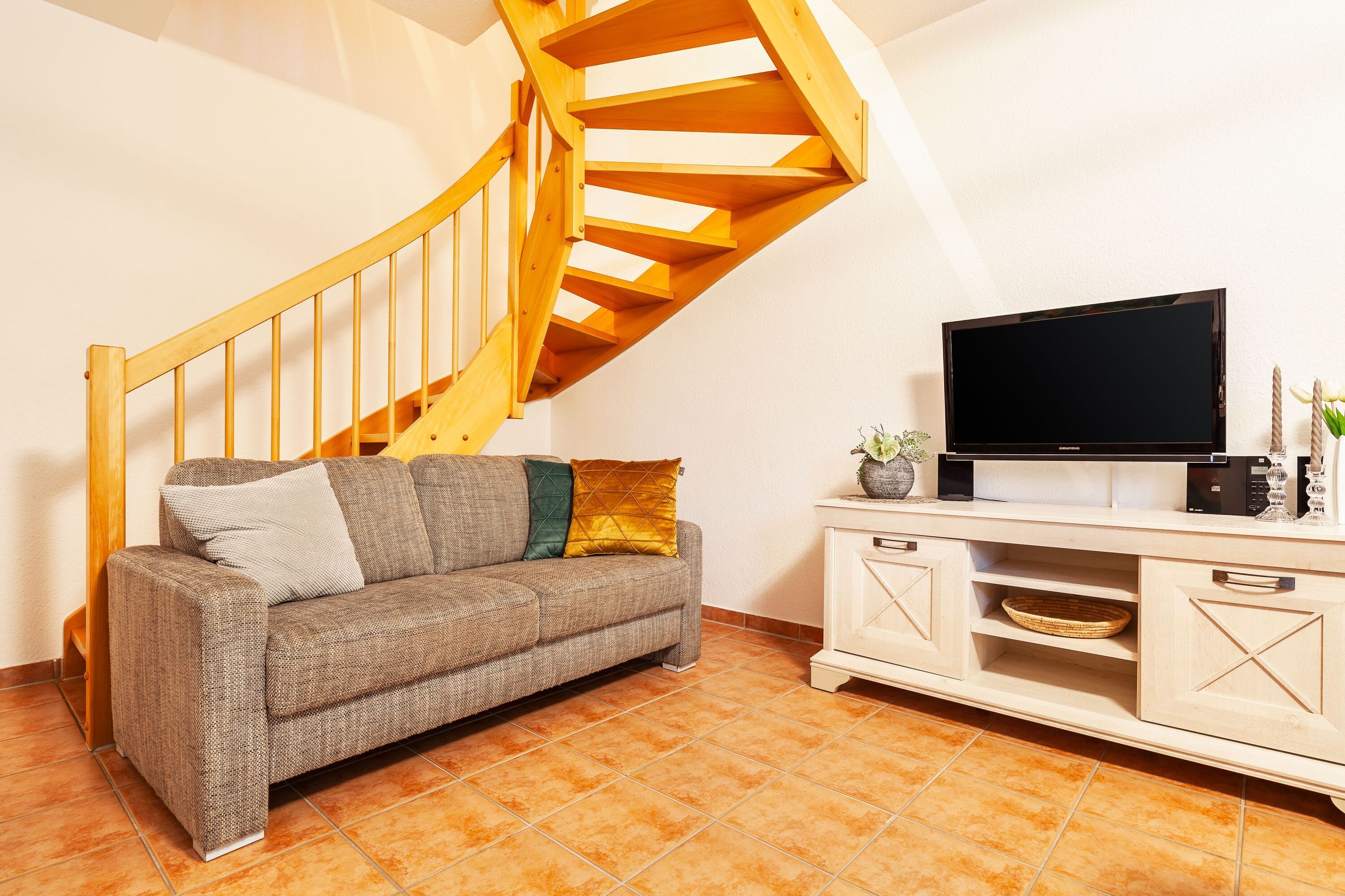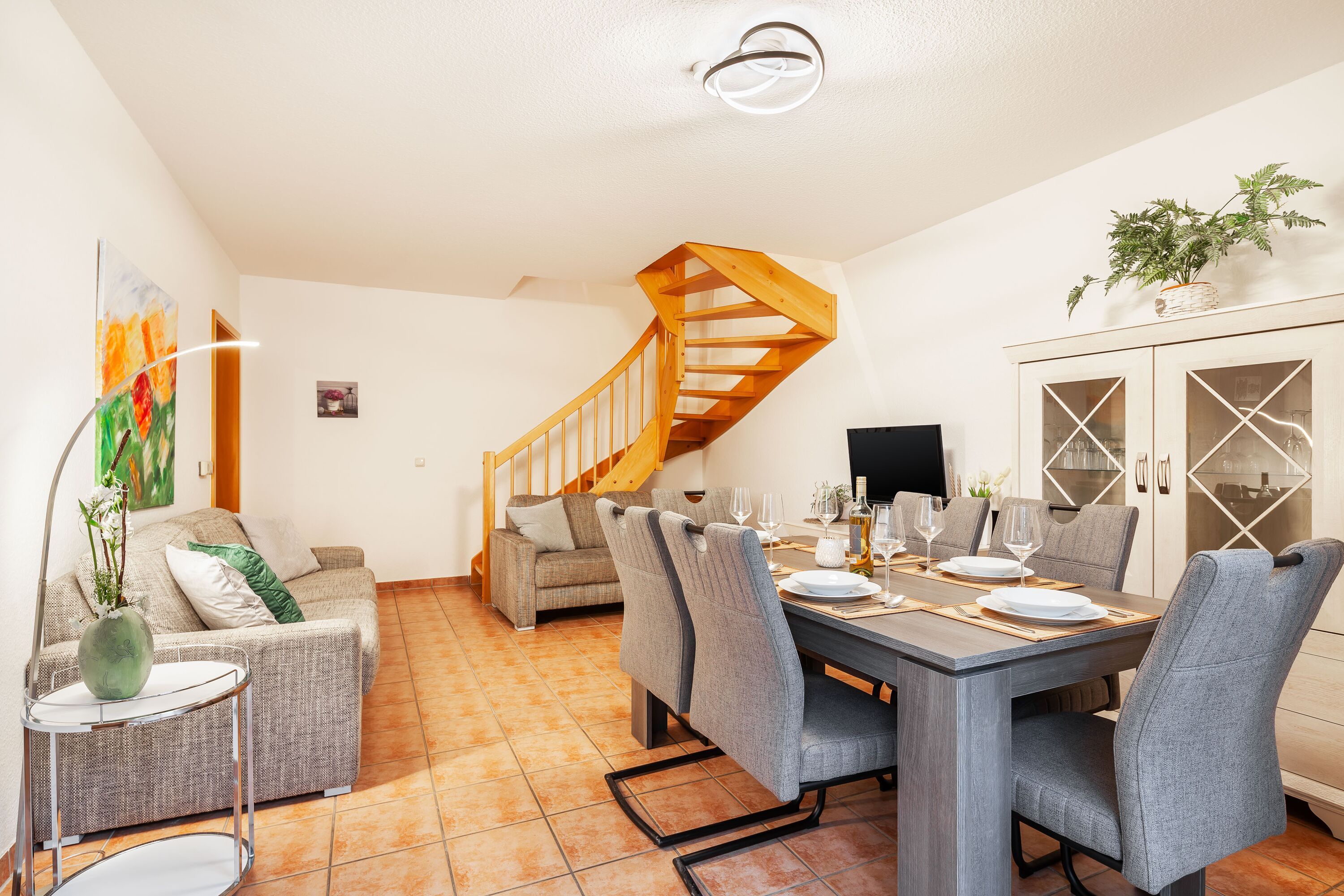Die offene Küche ist mit allen notwendigen Utensilien ausgestattet, die man für die Zubereitung von Mahlzeiten im Familienurlaub benötigt, wie zum Beispiel einem Geschirrspüler und einer Kaffeemaschine. Beim Betreten des Hauses gelangt man zunächst in den Flur, von dem aus man in das Wohnzimmer und den Essbereich gelangt.
