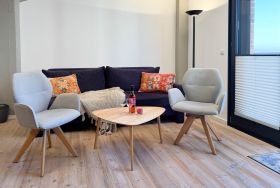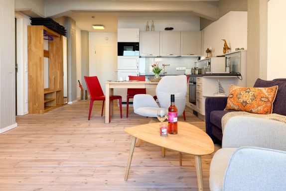 Die Speicherresidenz App. 3.1 empfängt Sie mit einer einladenden Atmosphäre. Der großzügige Wohnbereich mit Schlafcouch und Essplatz lädt zu gemütlichen Abenden ein. In der voll ausgestatteten Küche können Sie Ihre Lieblingsgerichte zubereiten, die Sie anschließend auf dem Balkon mit Wasserblick genießen können. Die Schlafzimmer bieten komfortable Ruhe, während das moderne Badezimmer mit ebenerdiger Dusche und ein zusätzliches Gäste-WC zusätzlichen Komfort bieten.