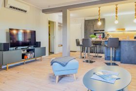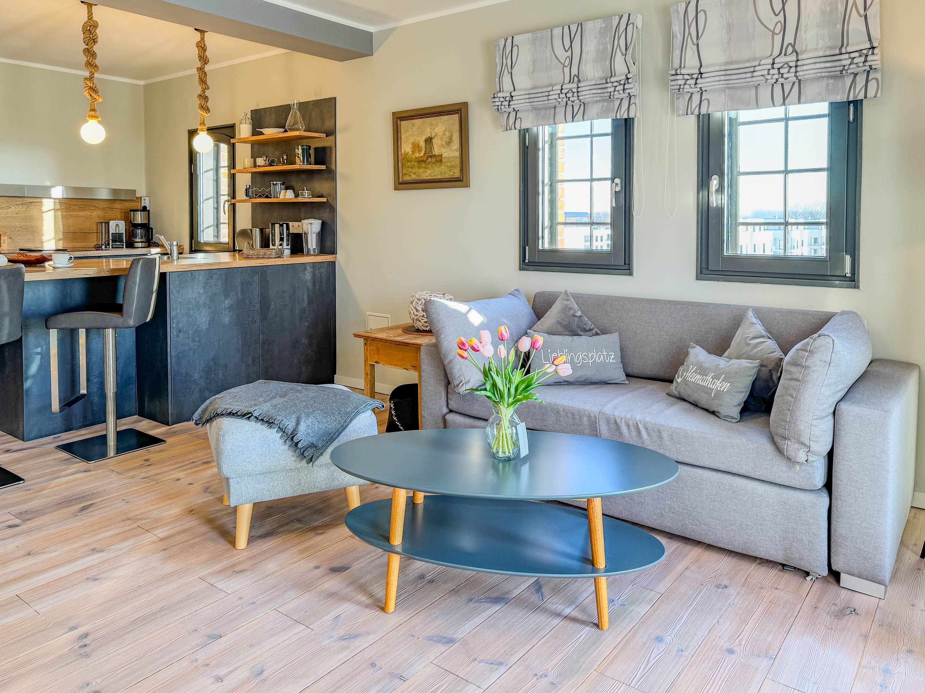 Dieses moderne Apartment im 4. Obergeschoss bietet auf ca. 55 m² Platz für bis zu 3 Personen und besticht durch seine hochwertige Ausstattung und die ideale Lage in der Nähe des Barther Hafens.