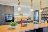 • Küche: Voll ausgestattete Küchenzeile mit Ceranfeld, Kühlschrank, Kaffeemaschine, Geschirr, Töpfen und Pfannen