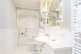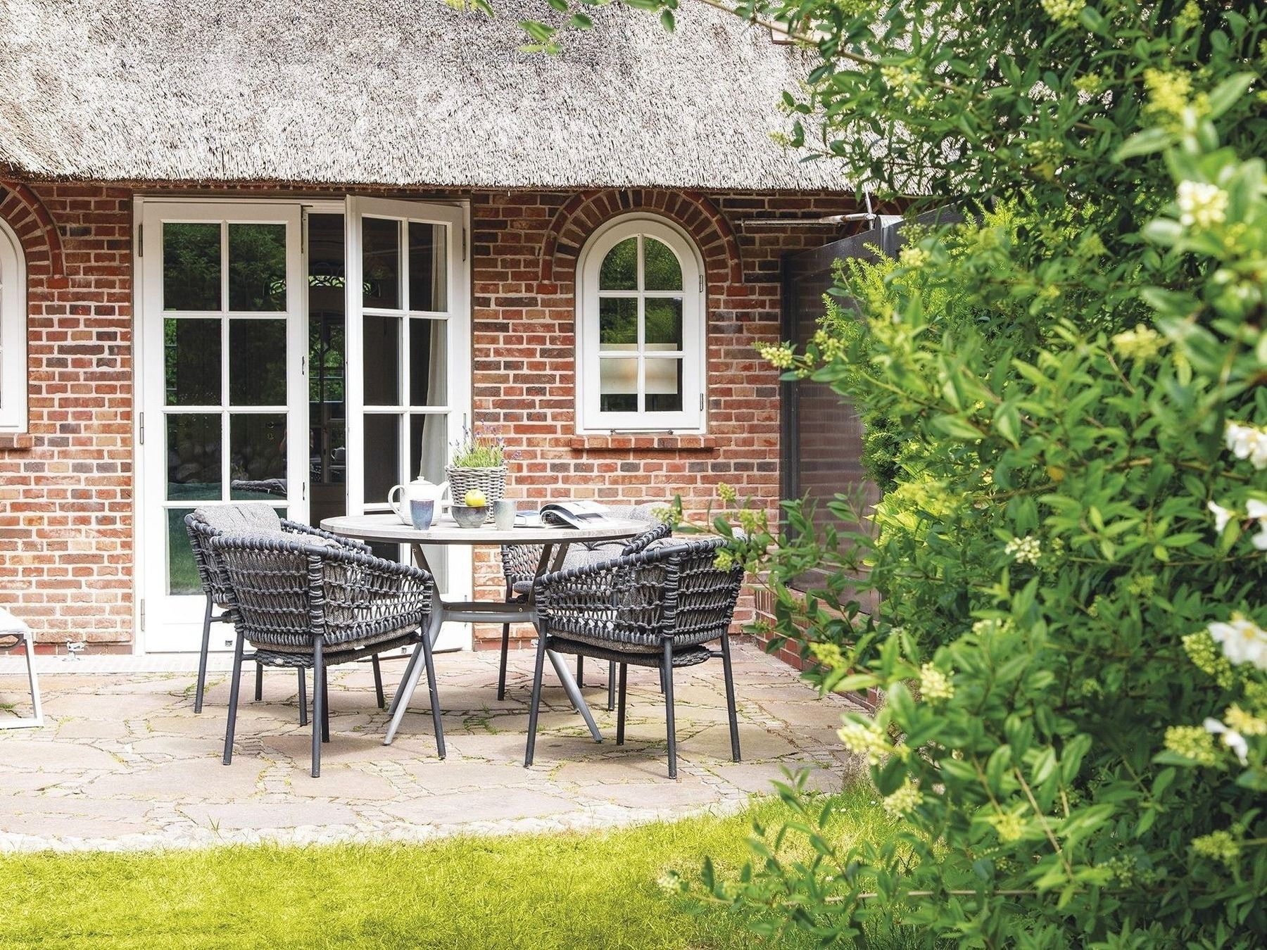 Gemütlichkeit trifft Stil - ein entzückendes Hausteil für Vier zentrumsnah und doch ruhig gelegen. Von der Haustür haben Sie sofort den Durchblick bis in den Garten mit Terrasse und Strandkorb zur Sonnenseite Süden. Das Erdgeschoss erfreut mit separater Küche und kombiniertem Wohn-/Essbereich in eleganten Naturtönen mit kleinen Farbakzenten mit gemütlichen Polstermöbeln, Kamin und schönem Esstisch für gemütliche Runden. Das hell gestaltete Untergeschoss bietet ein Doppelschlafzimmer mit großen Einbauschränken und gleich nebenan ein Wannenbad. Ein großes Schlafzimmer mit Gartenblick und ein modernes Duschbad befinden sich im Obergeschoss. Das Quartier ist mit Terracotta- und Holzfußböden ausgestattet.