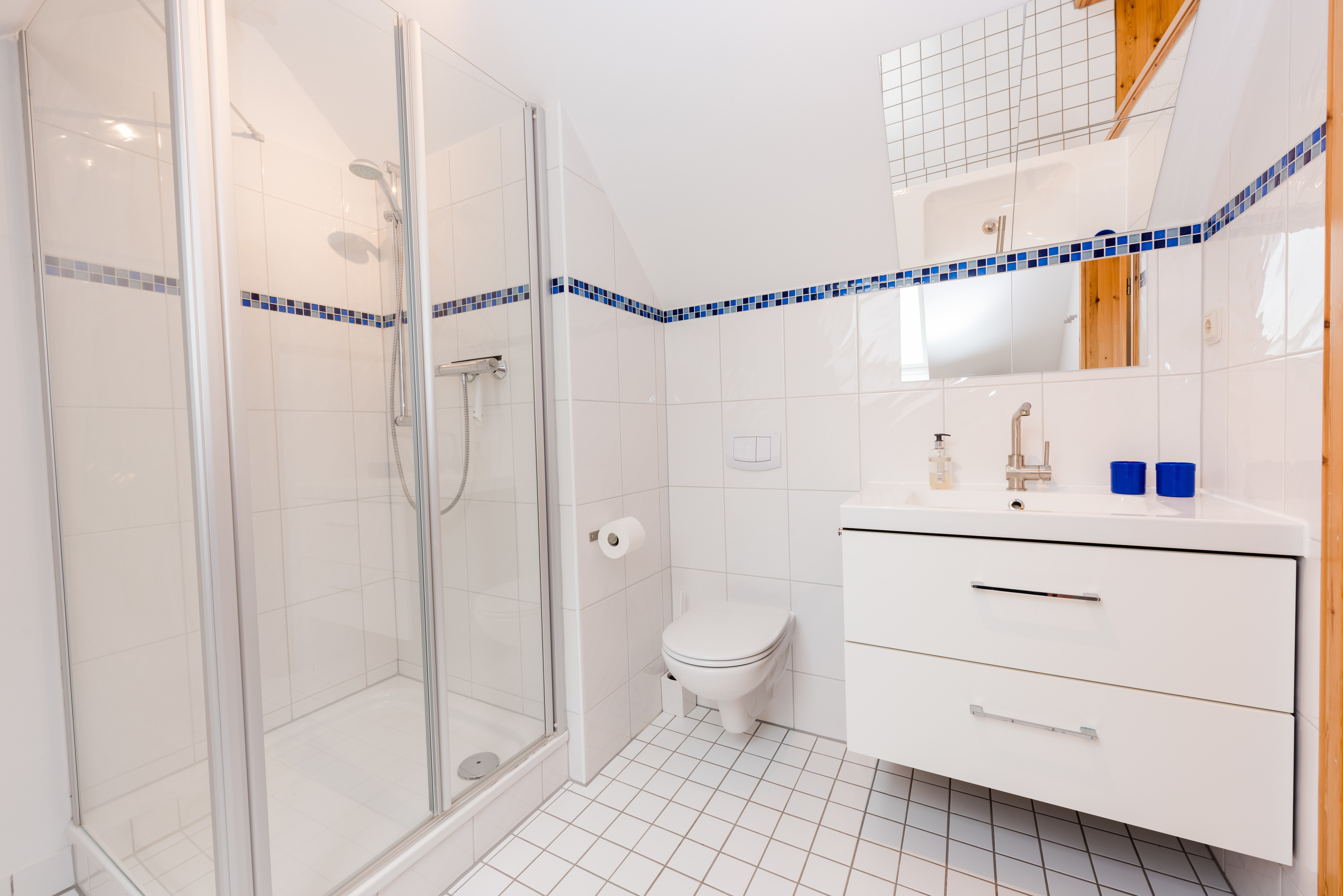 Die untere Etage (ca. 120 qm). umfasst großzügige Diele, Bad, Schlafzimmer und großen Wohnbereich. Die zweite Ebene der Wohnung im Dachgeschoss bietet einen zusätzlichem Wohnraum (mit Schlafcouch), ein zweites Schlafzimmer und ein weiteres Duschbad.
