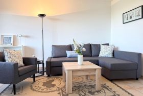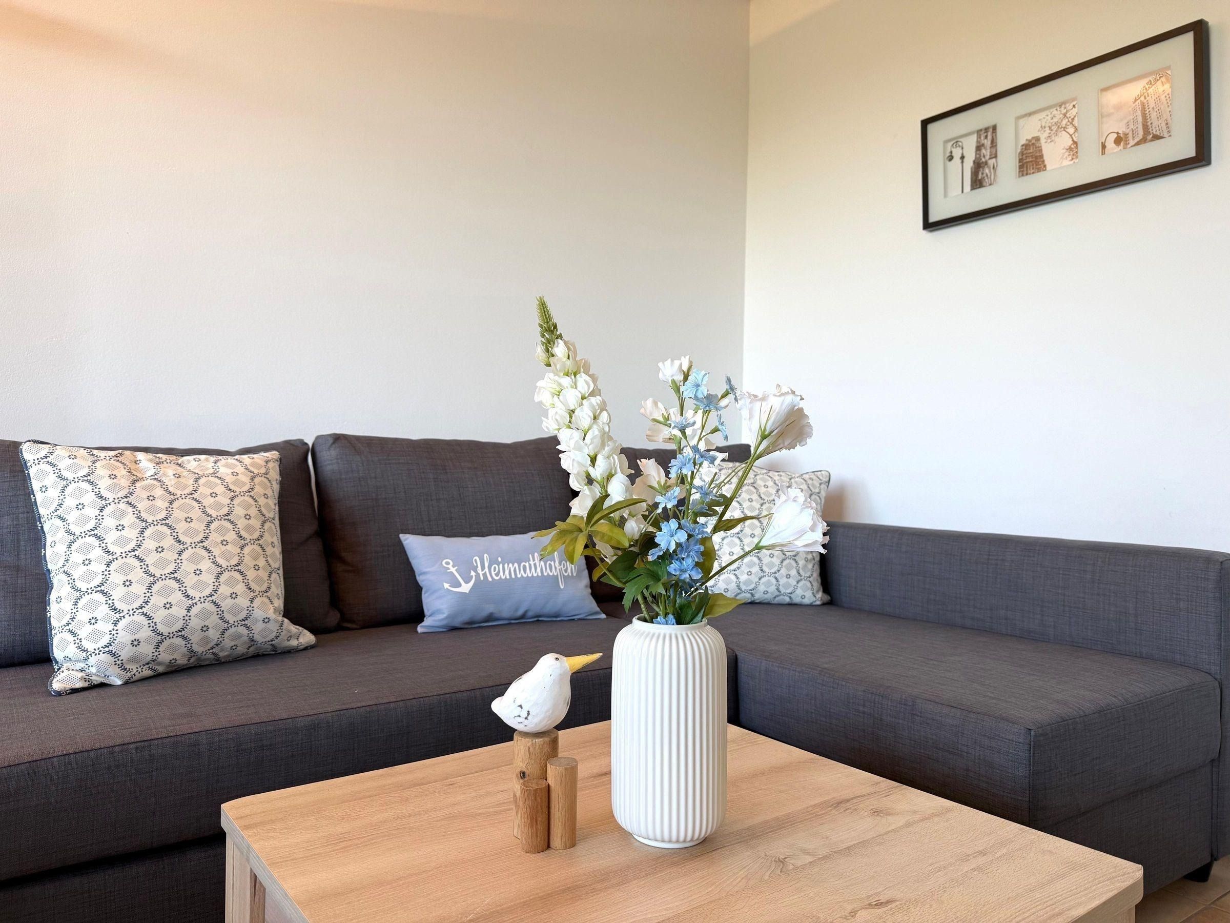 Diese gemütliche Ferienwohnung bietet modernen Komfort und eignet sich ideal für Allergiker. Sie verfügt über zwei Schlafzimmer, darunter ein Doppelbett und zwei Einzelbetten, sowie eine Schlafcouch im Wohnschlafzimmer.