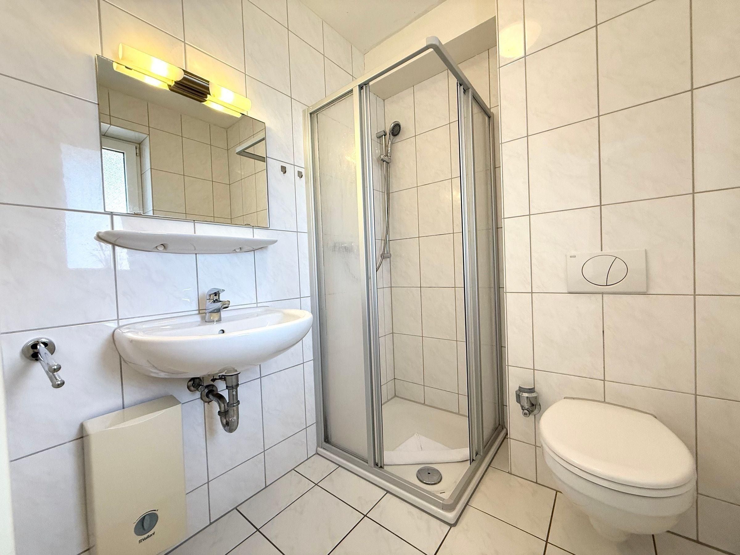 Das Badezimmer ist mit einer bodengleichen Dusche, einem Haartrockner und einem Fenster ausgestattet. Weitere Annehmlichkeiten umfassen Internet mit WLAN, einen TV, Heizung, einen Esstisch und eine Garderobe.