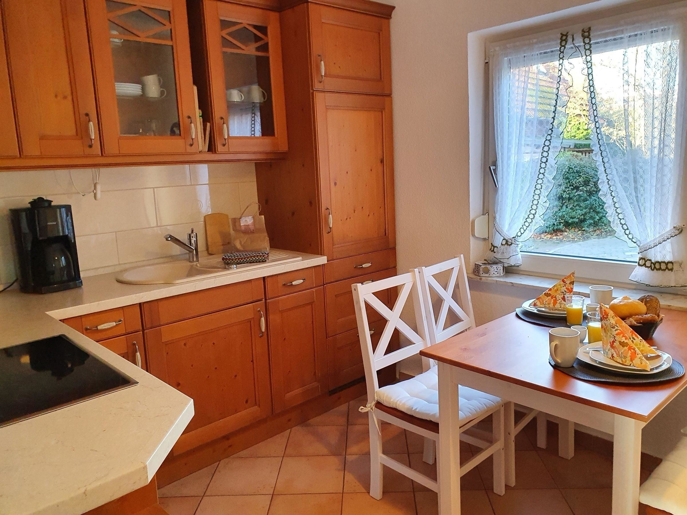 Diese großzügige Ferienwohnung bietet eine ideale Unterkunft für Familien oder Gruppen. Mit vier Schlafzimmern, darunter zwei Doppelbetten und fünf Einzelbetten, finden die Gäste ausreichend Platz für einen entspannten Aufenthalt. Die separate, voll ausgestattete Küche verfügt über einen Elektro-/Gasherd, Backofen, Mikrowelle und Kühlschrank sowie alle notwendigen Utensilien wie Geschirr, Besteck und Kaffeemaschine. Die Badezimmer sind modern gestaltet und bieten neben einem Badezimmer mit Fenster und Badewanne auch ein praktisches Gäste-WC.