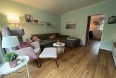 Im Wohnzimmer können Sie es sich auf der großen Sofalandschaft gemütlich machen. Ein 55 Zoll großer Smart-TV sowie ein SONOS-Soundsystem und schnelles Internet runden den Komfort ab. Vom Wohnzimmer gelangen Sie durch eine große Schiebetür auf die Terrasse und in den Garten.