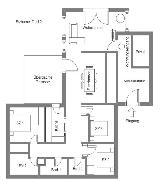 **** Etzhorner Tied 2 **** familienfreundliche, hochwertige Ferienwohnung, 4 Schlafzimmer, große überdachte Terrasse, Garten