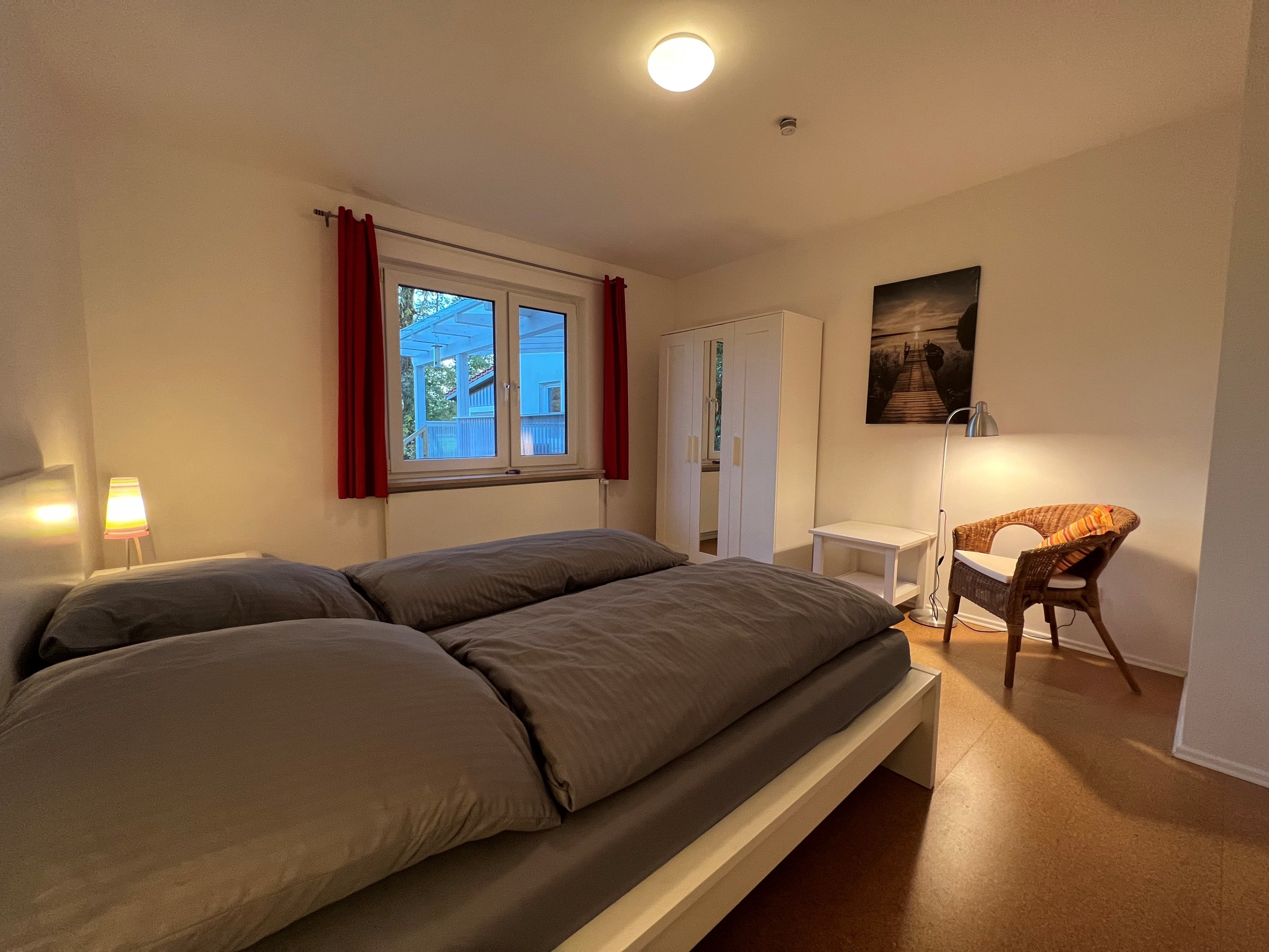 4 Schlafzimmer; 3 Doppelbetten und 1 Einzelbett für bis zu 7 Personen + Kinderbett. WLAN (Glasfaser), PS 5; HD-TV , große überdachte Terrasse , separater Eingang. Bücher, Spiele, PS Spiele, Cdś, Blue-Rayś, Gartenmöbel auf der Dachterrasse,