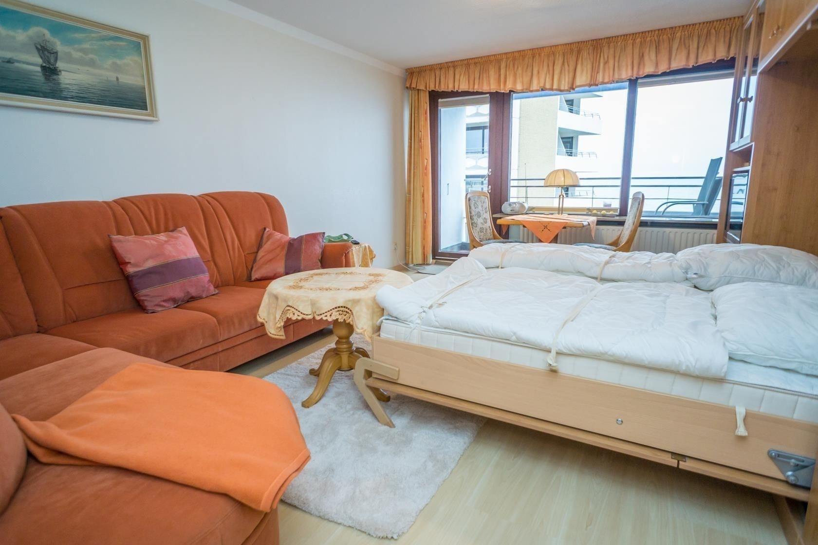Die Ferienwohnung bietet ein komfortables und allergikerfreundliches Ambiente, ideal für erholsame Urlaubstage. Sie verfügt über ein Schlafzimmer mit einem Doppelbett sowie ein weiteres Doppelbett im Wohnschlafzimmer, das zusätzlich mit einem gemütlichen Sofa ausgestattet ist. Die moderne Küchenzeile ist mit einer Mikrowelle, einem Wasserkocher, einer Kaffeemaschine, einem Toaster und ausreichend Geschirr sowie Besteck ausgestattet. Ein Duschbad sorgt für zusätzlichen Komfort.