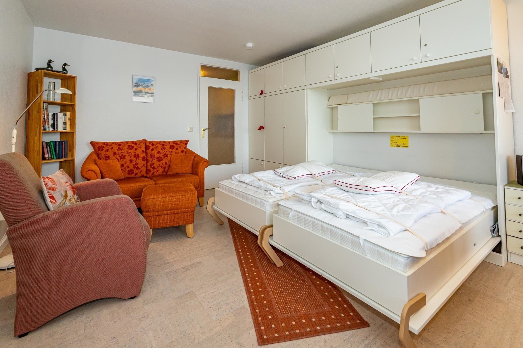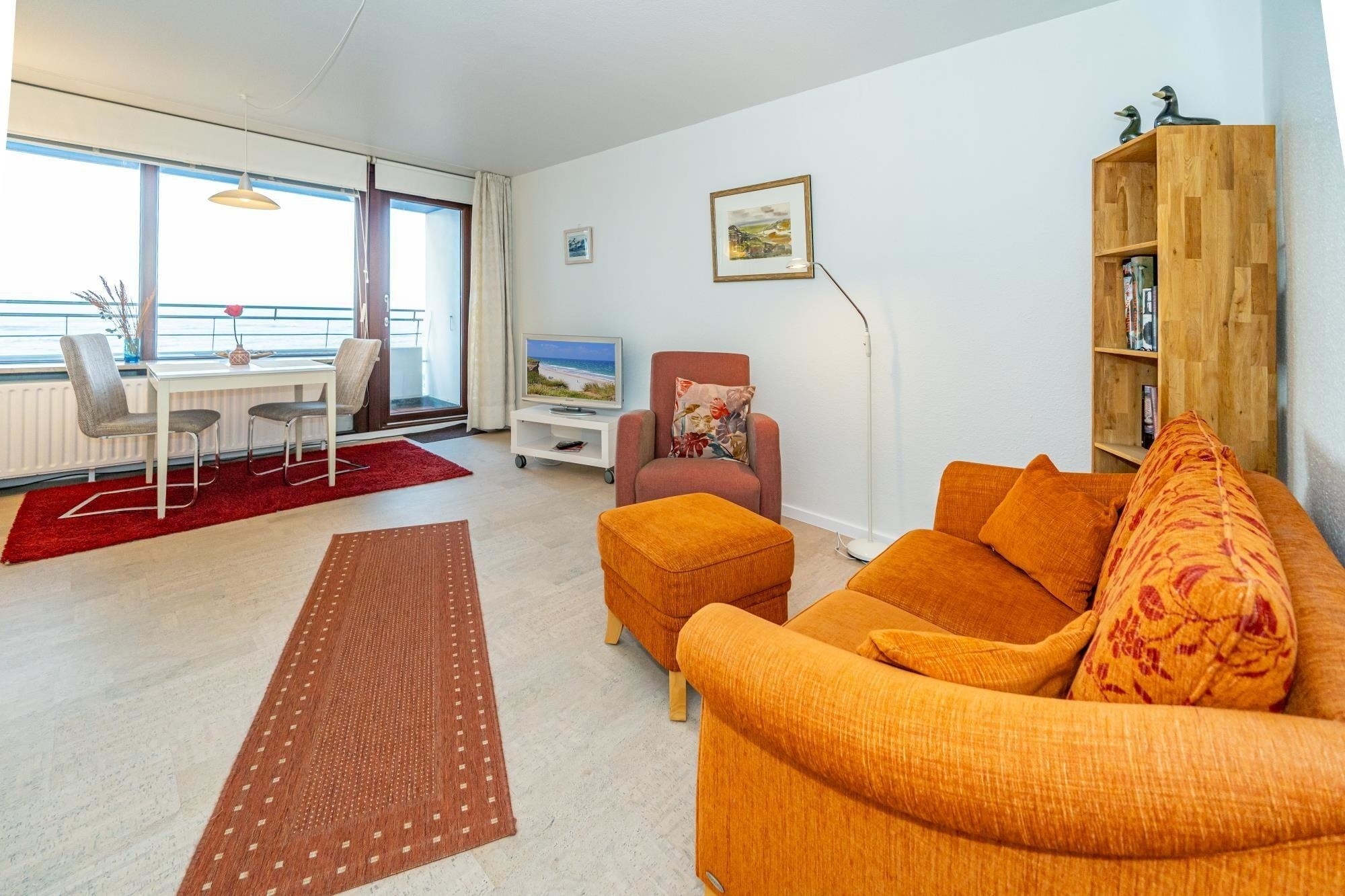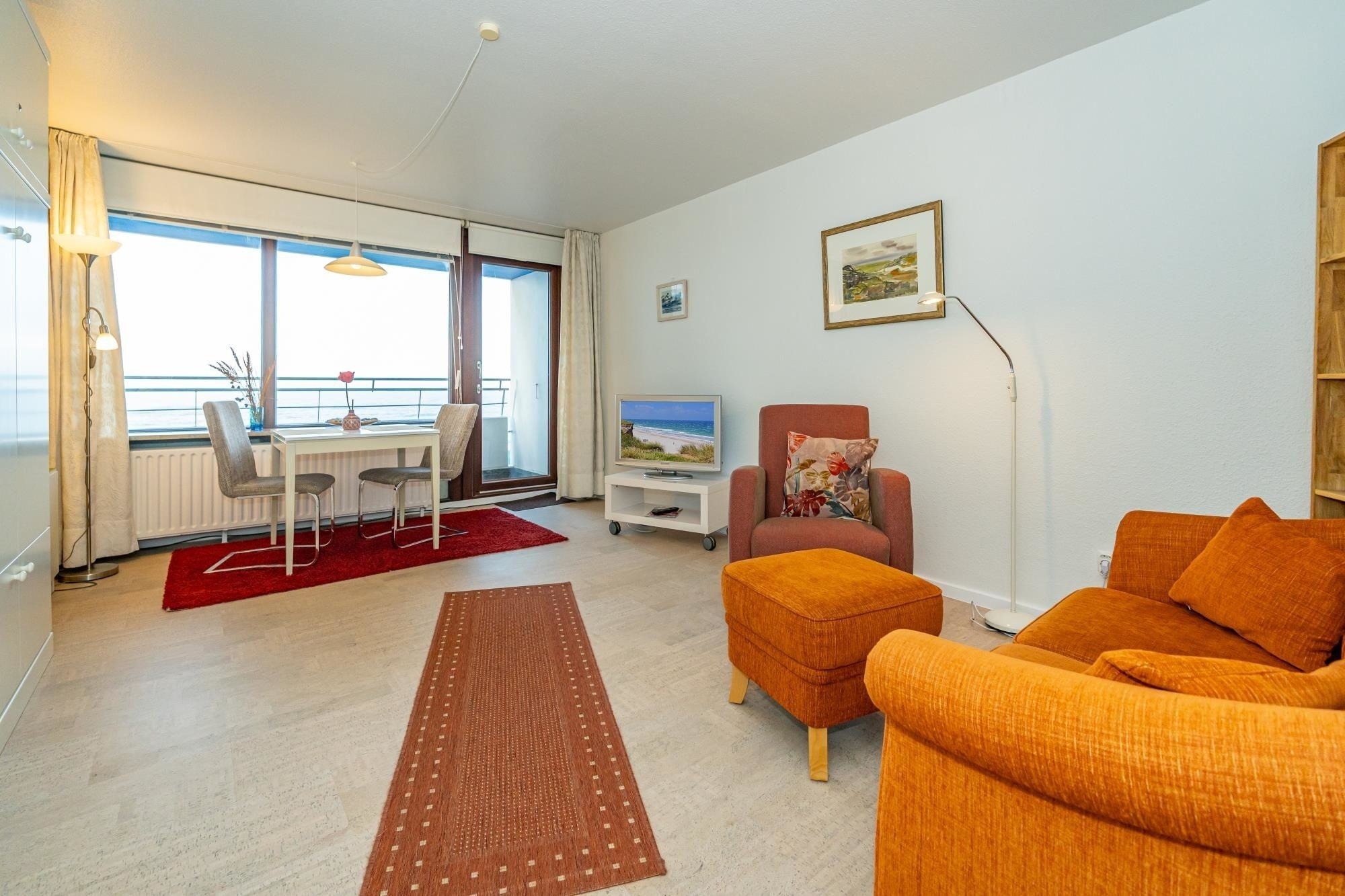 Diese Wohnung befindet sich im Hause Sylter Welle in der 5. Etage mit Westbalkon zur Seeseite und schönem Blick Richtung Strand/ Promenade. Die teilrenoviert Wohnung / neues Schrankbett/ besteht aus einem gemütlichem Wohn/Schlafraum / Korkfussboden mit Schrankbett für 2 Personen (einzeln klappbar), Essplatz am Fenster sowie einem 2.sitzigen Sofa und Sessel. Im Flur befindet sich eine neuwertige EBK mit Geschirrspüler/ 2-Plattenherd und Mikrowelle .Ferner haben Sie ein Stereoanlage (mit CD-Spieler) und Flachbildschirm . Das Bad hat Wanne/WC (Duschvorrichtung) Dies ist eine Nichtraucher-Wohnung.Strandurlaub!