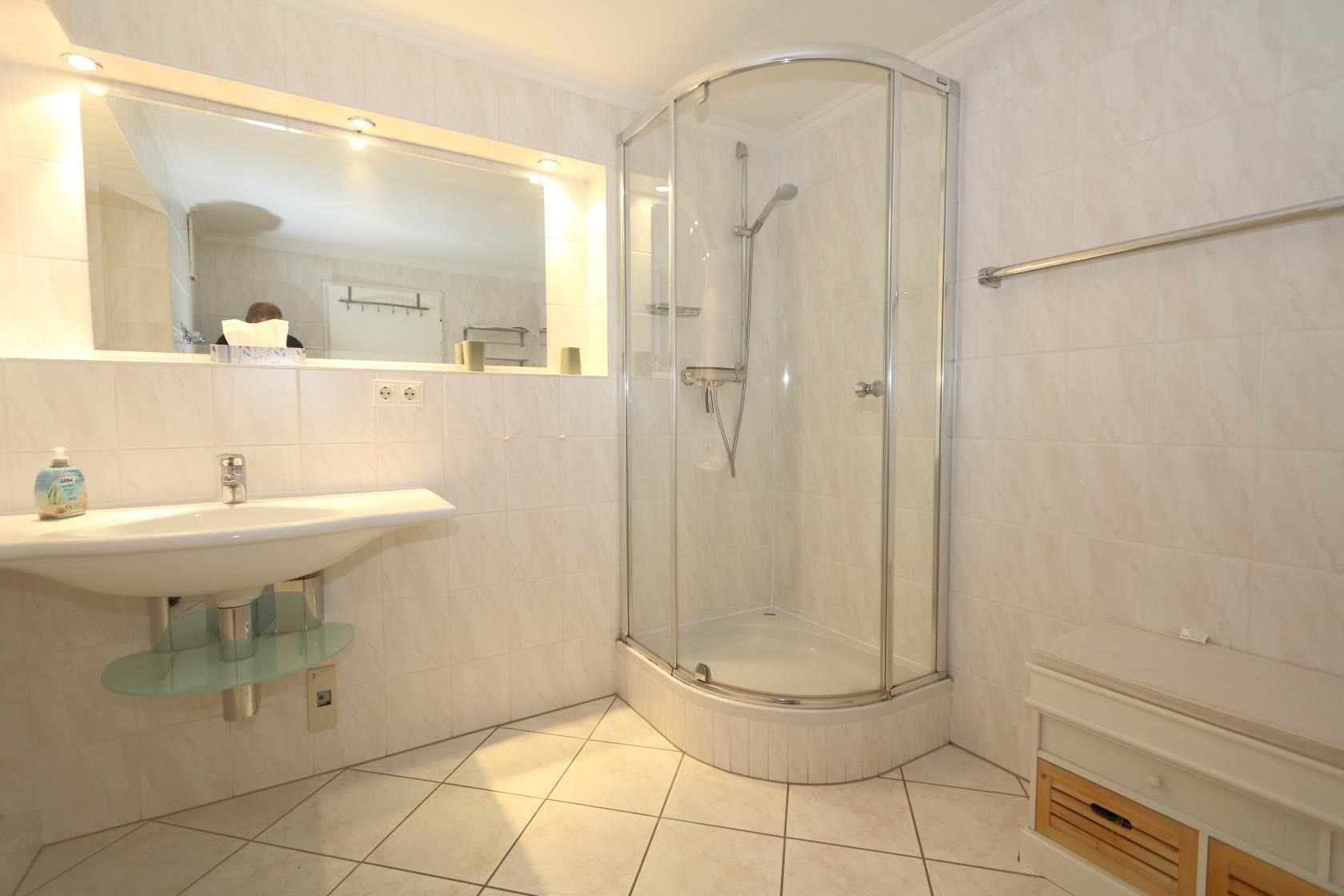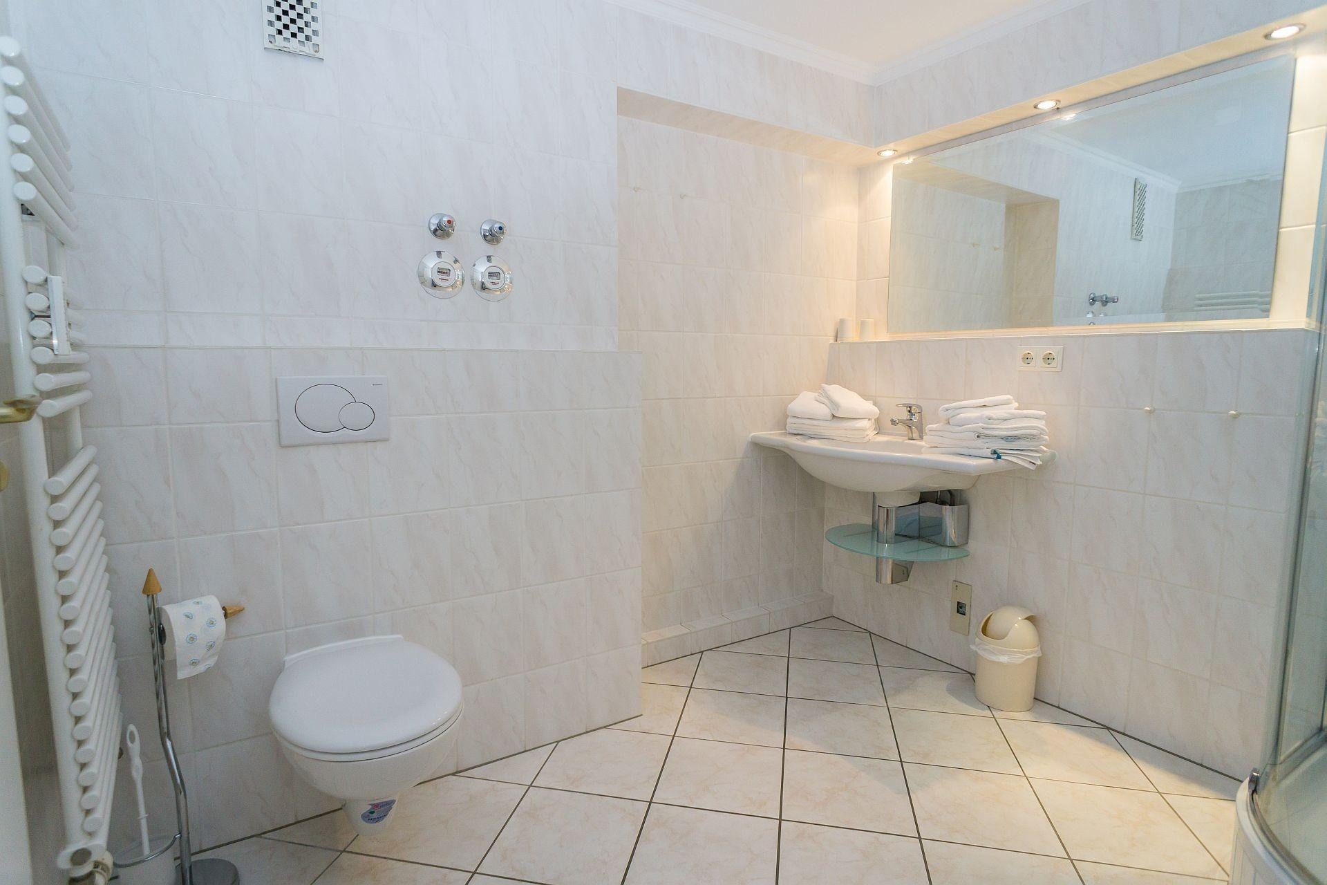 Das moderne Duschbad sorgt für entspanntes Wohlbefinden. Für Unterhaltung steht ein TV zur Verfügung. Internetzugang über WLAN ist ebenso gegeben. Die Wohnung ist durch einen Fahrstuhl erreichbar und bietet weitere Annehmlichkeiten wie eine Waschmaschine, Heizung und Rauchmelder. Zudem wird die Unterkunft mit 100% Bio-/Öko-Strom betrieben, was umweltbewussten Gästen zugutekommt. Geschirr und Besteck sind ebenfalls vorhanden, um den Aufenthalt angenehm zu gestalten.