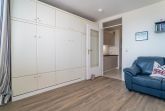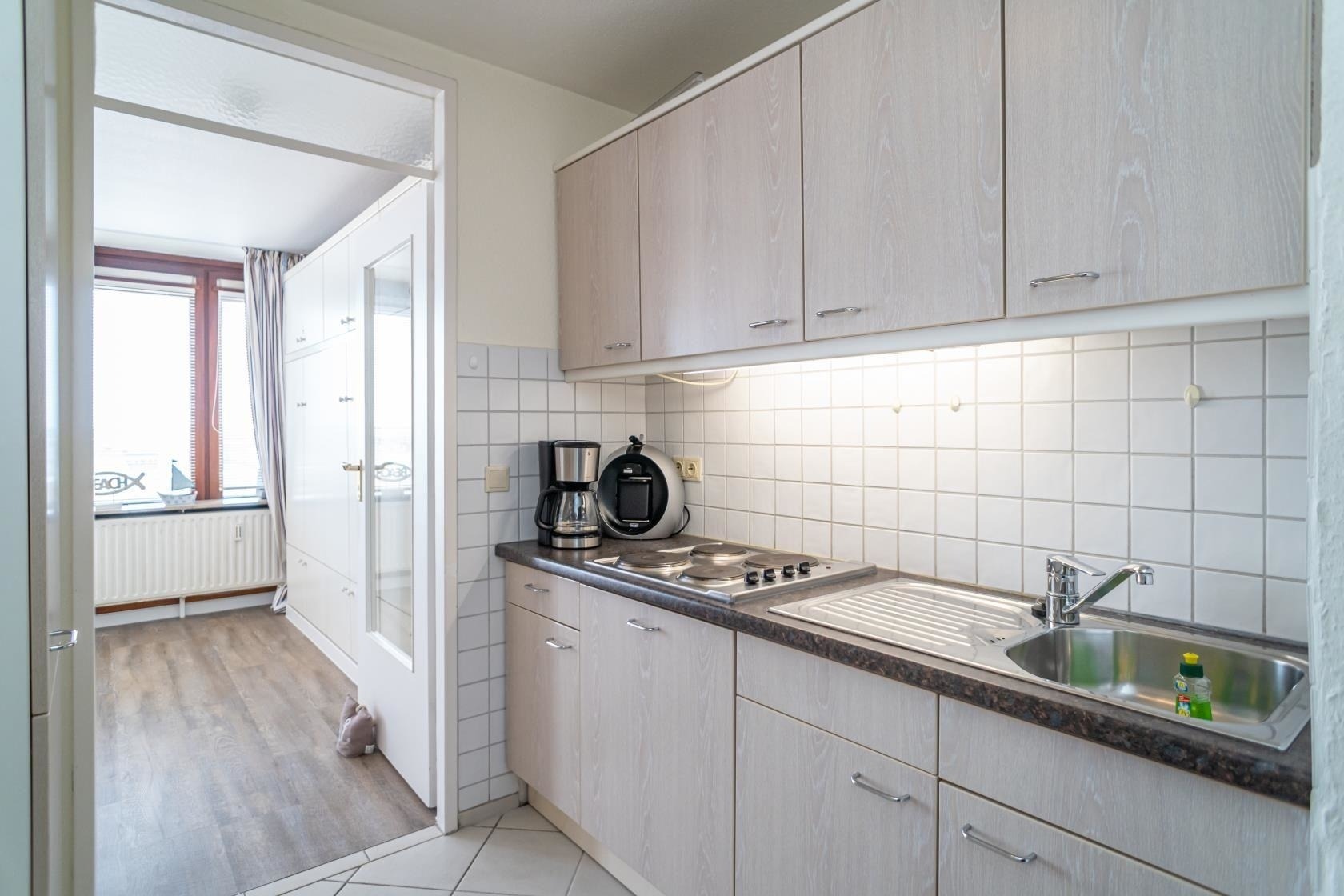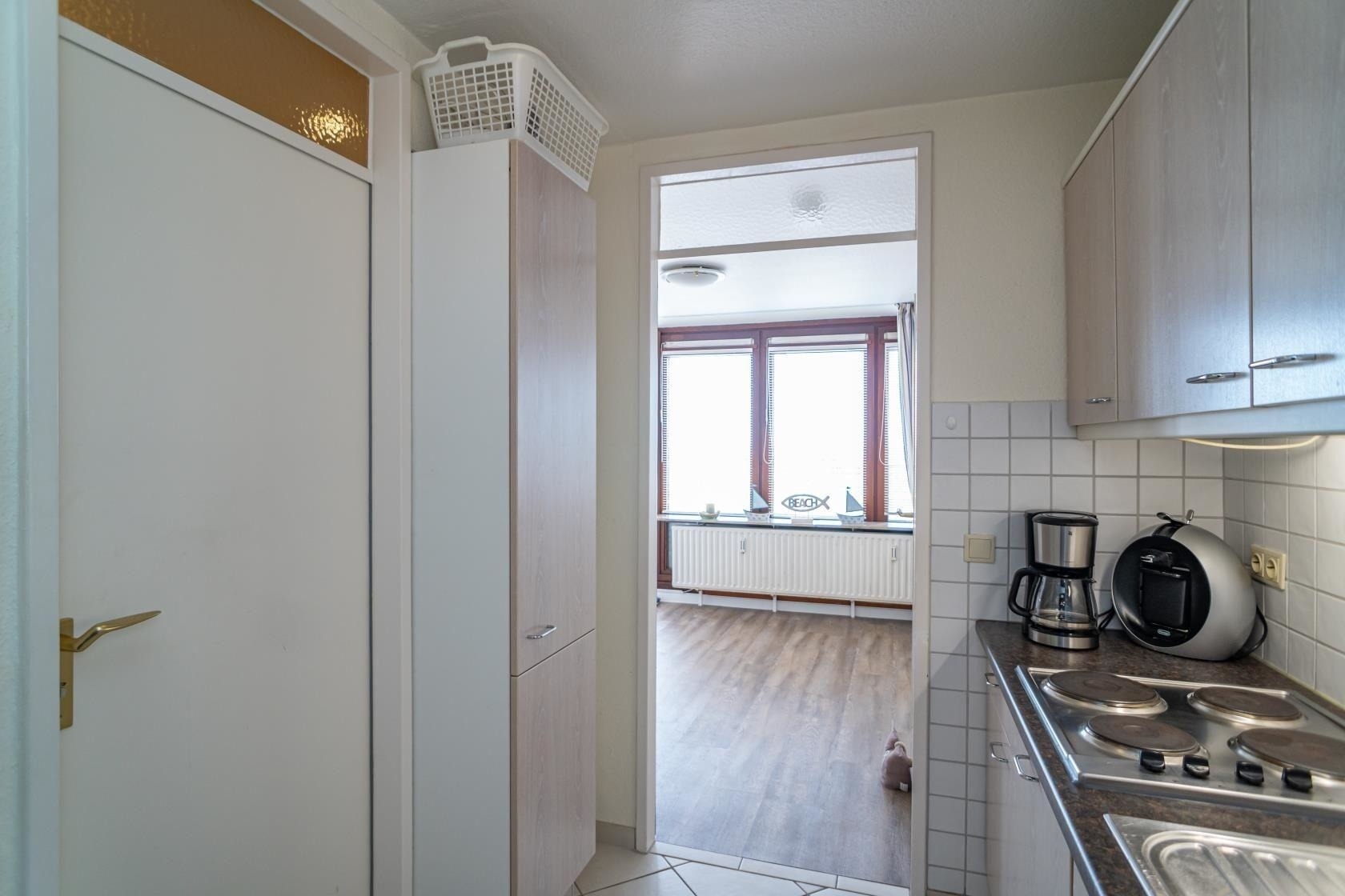 Die Küchenzeile ist mit einem Kühlschrank, einer Kaffeemaschine, einem Toaster und einem Wasserkocher ausgestattet und bietet zudem eine Gefriermöglichkeit. Geschirr und Besteck sind ebenfalls vorhanden, um die Selbstversorgung zu erleichtern.