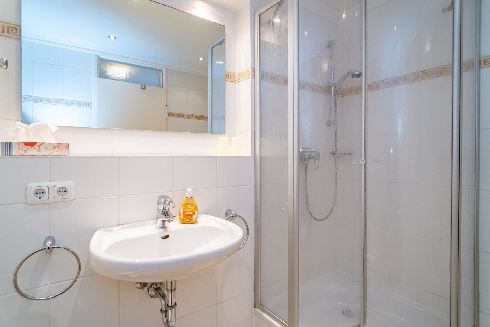 Die Ferienwohnung bietet Gästen eine komfortable und moderne Ausstattung. Sie verfügt über ein einladendes Wohnschlafzimmer sowie ein Badezimmer mit Dusche. Insgesamt stehen zwei Doppelbetten und zwei Einzelbetten zur Verfügung, ideal für Familien oder Gruppen.