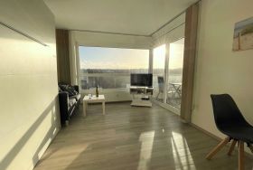 Das charmante Studio-Apartment für zwei Personen in Cuxhaven-Sahlenburg bietet Meerblick, eine gut ausgestattete Küchenzeile und einen Balkon – perfekt für entspannende Strandtage und erholsame Nächte.