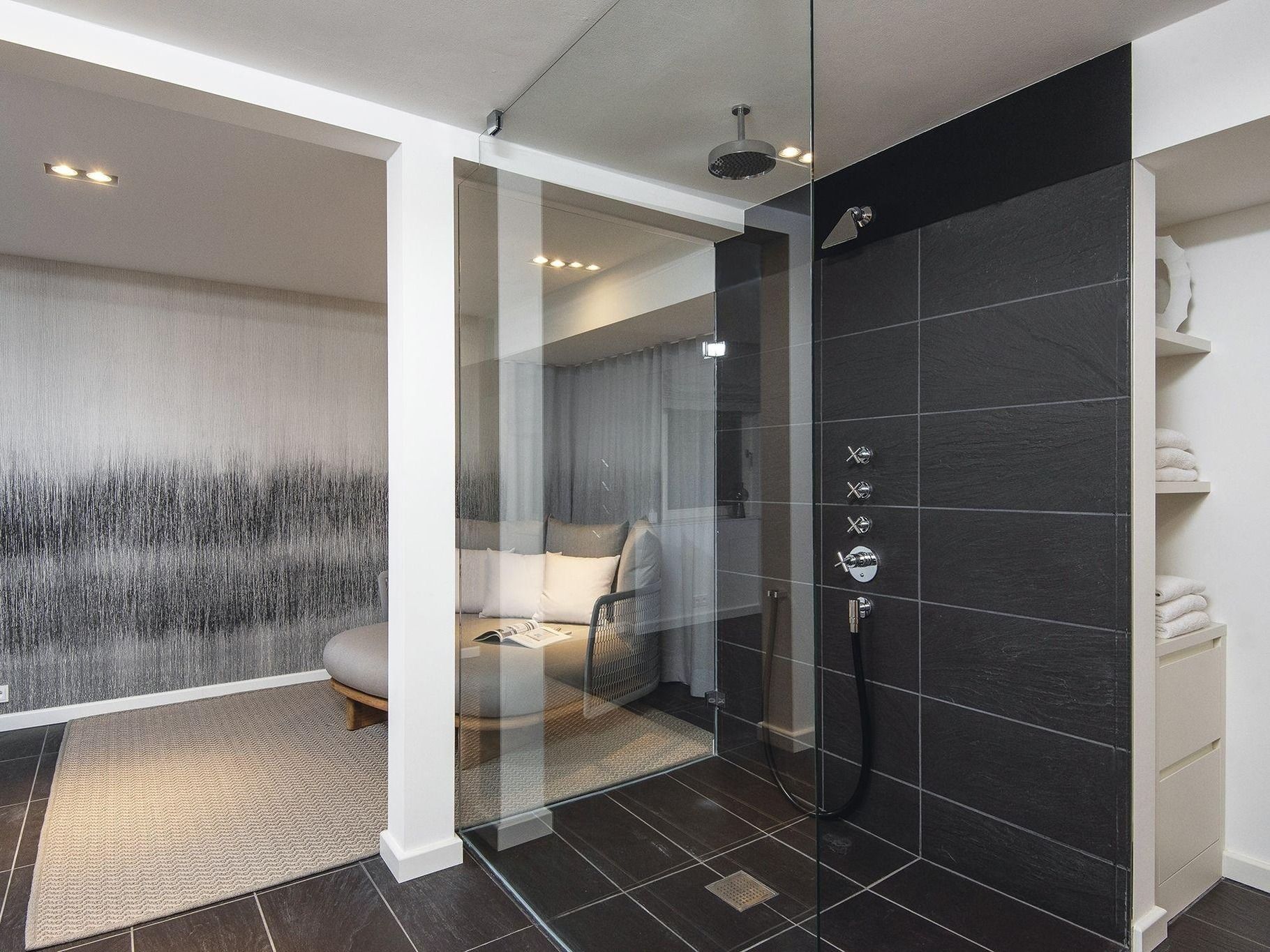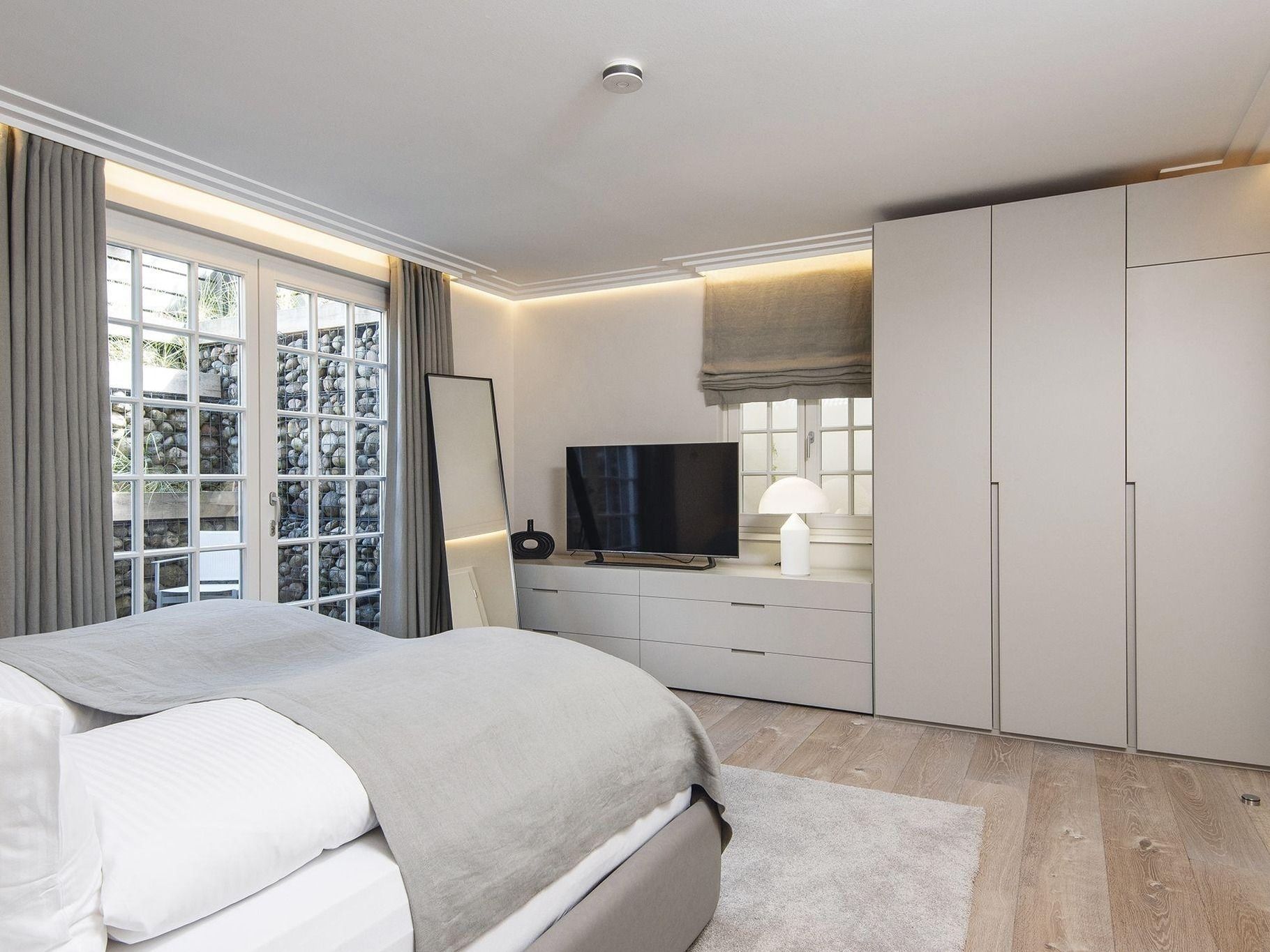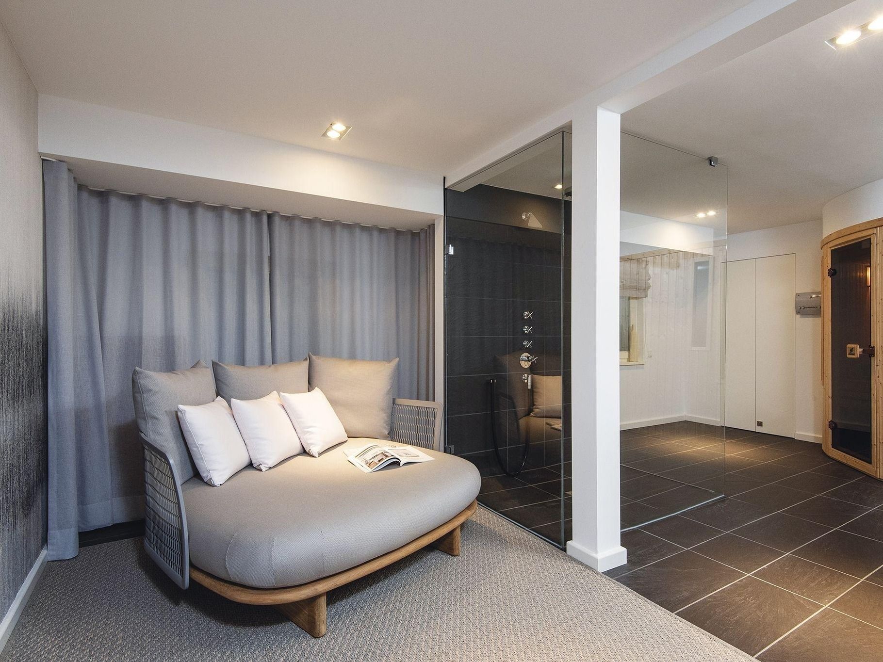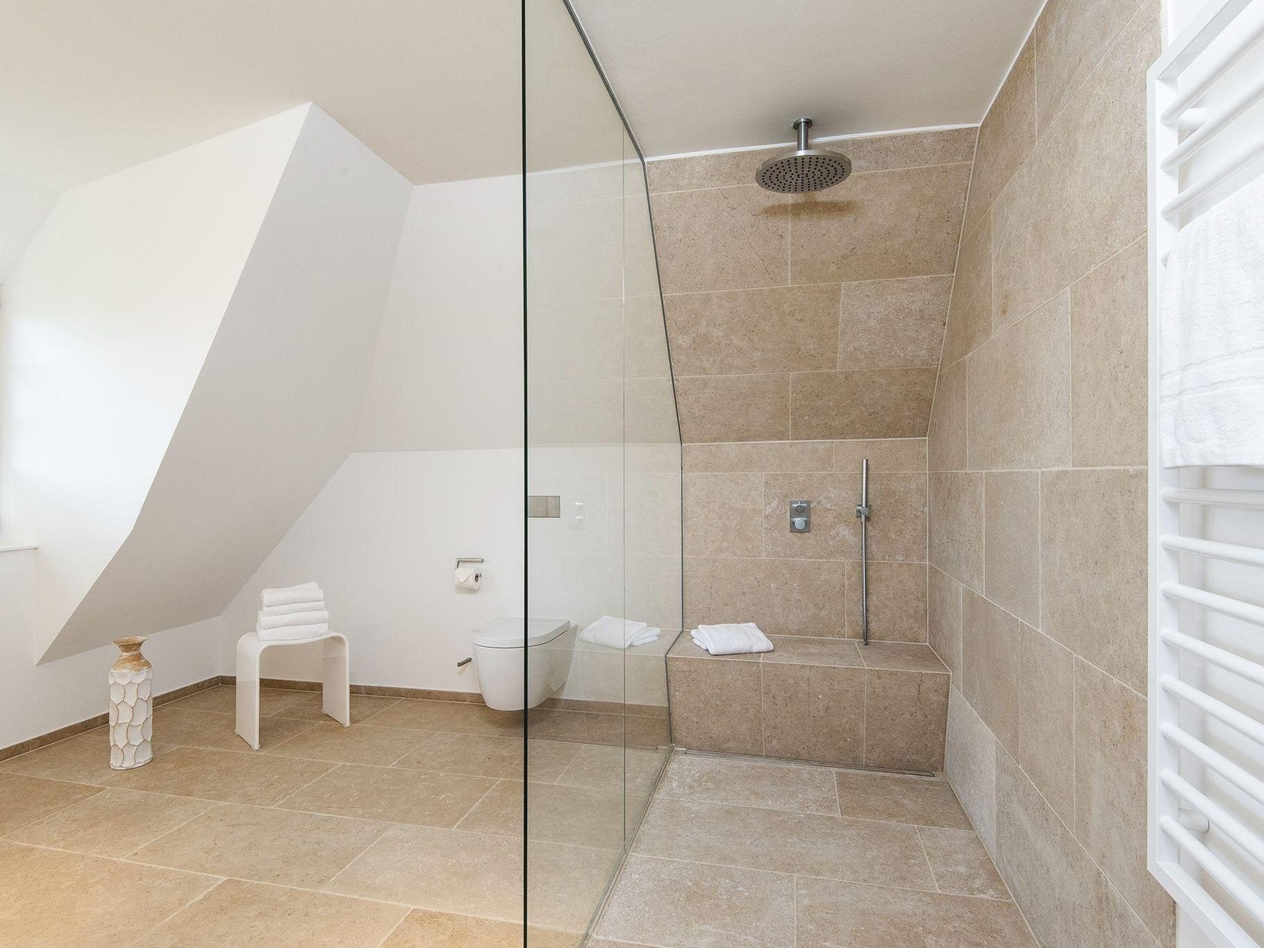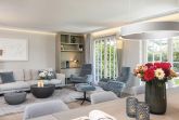 Frisch und luftig ist die Atmosphäre in diesem schönen Hausteil im Süden Kampens. Modernes Ambiente empfängt Sie im Flur. Von hier erreichen Sie den Wohn-Essbereich mit großem Esstisch, bequemem Loungesofa, Kamin und Zugang zur Südterrasse. Indirekte Beleuchtung und ein elektrischer Kamin sorgen für Gemütlichkeit, wie sie das gesamte Quartier erfüllt. Gegenüber die geräumige voll ausgestattete Küche mit Kochinsel, kleinem Essplatz am Tresen und Zugang zur Frühstücksterrasse. Ebenerdig findet sich noch ein modern eingerichtetes Doppelschlafzimmer und ein hochwertiges Bad mit ebenerdiger Dusche und Doppelwaschbecken. Im Obergeschoss erwartet Sie der Masterbedroom für Zwei, sowie ein geräumiges Bad mit Doppelwaschbecken. Über die Treppe ins Untergeschoss finden Sie zwei Doppelschlafzimmer mit Verbindungstür, eines davon mit privater Souterrain-Terrasse und ein weiteres Bad mit ebenerdiger Dusche und Doppelwaschbecken. Das Highlight dieser Etage ist der großzügige Wellnessbereich mit geräumiger Sauna, Erlebnisdusche und gemütlicher Relaxinsel, wo sich alle Widrigkeiten des Nordseewetters bestens aushalten lassen. Dieses schöne Hausteil erfüllt alle (Friesen-) Träume!