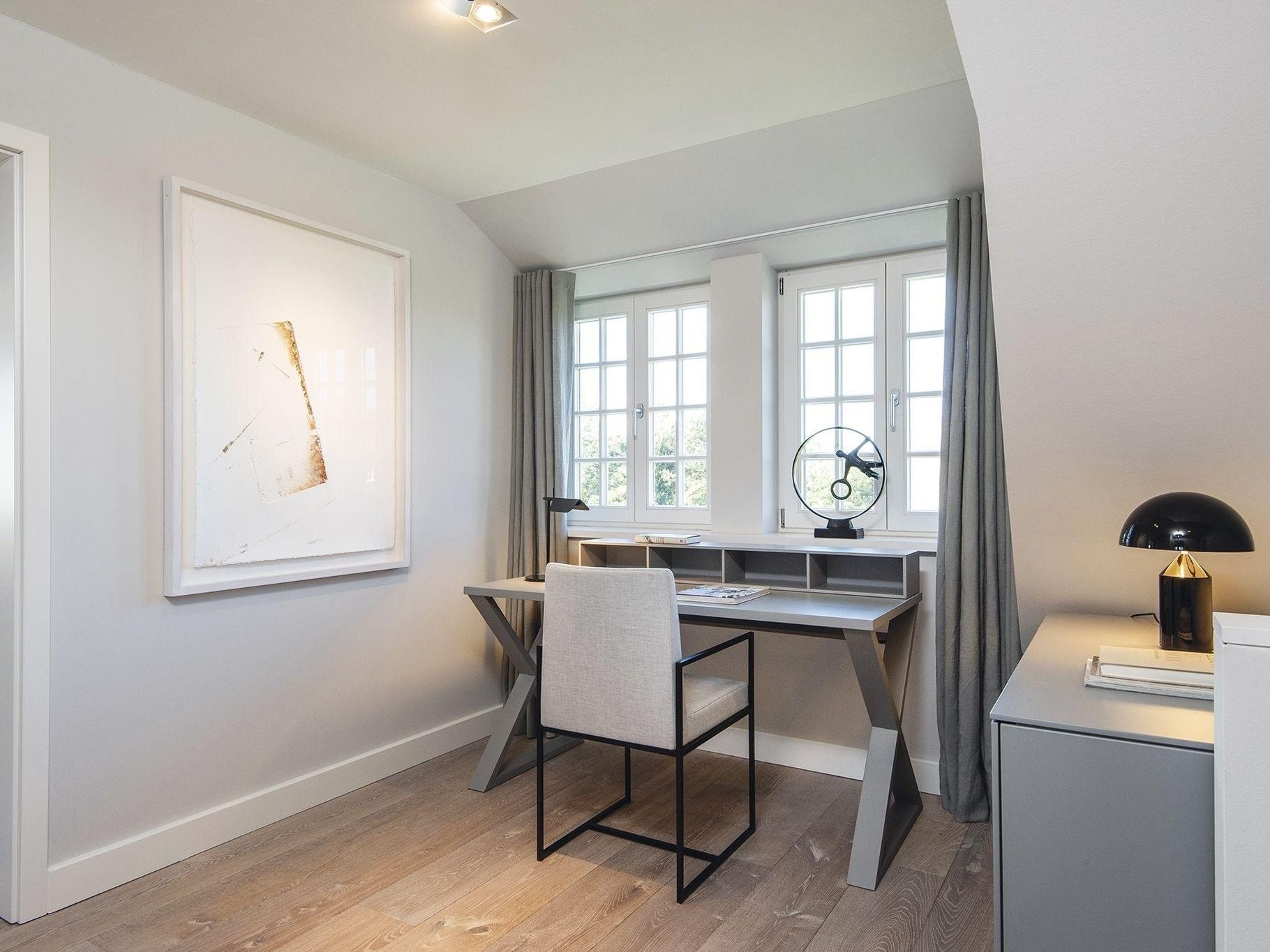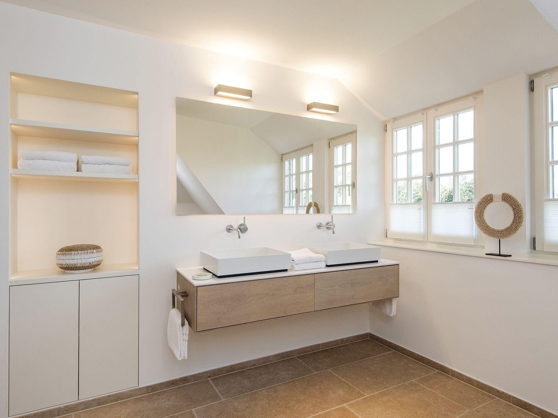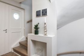 Frisch und luftig ist die Atmosphäre in diesem schönen Hausteil im Süden Kampens. Modernes Ambiente empfängt Sie im Flur. Von hier erreichen Sie den Wohn-Essbereich mit großem Esstisch, bequemem Loungesofa, Kamin und Zugang zur Südterrasse. Indirekte B...