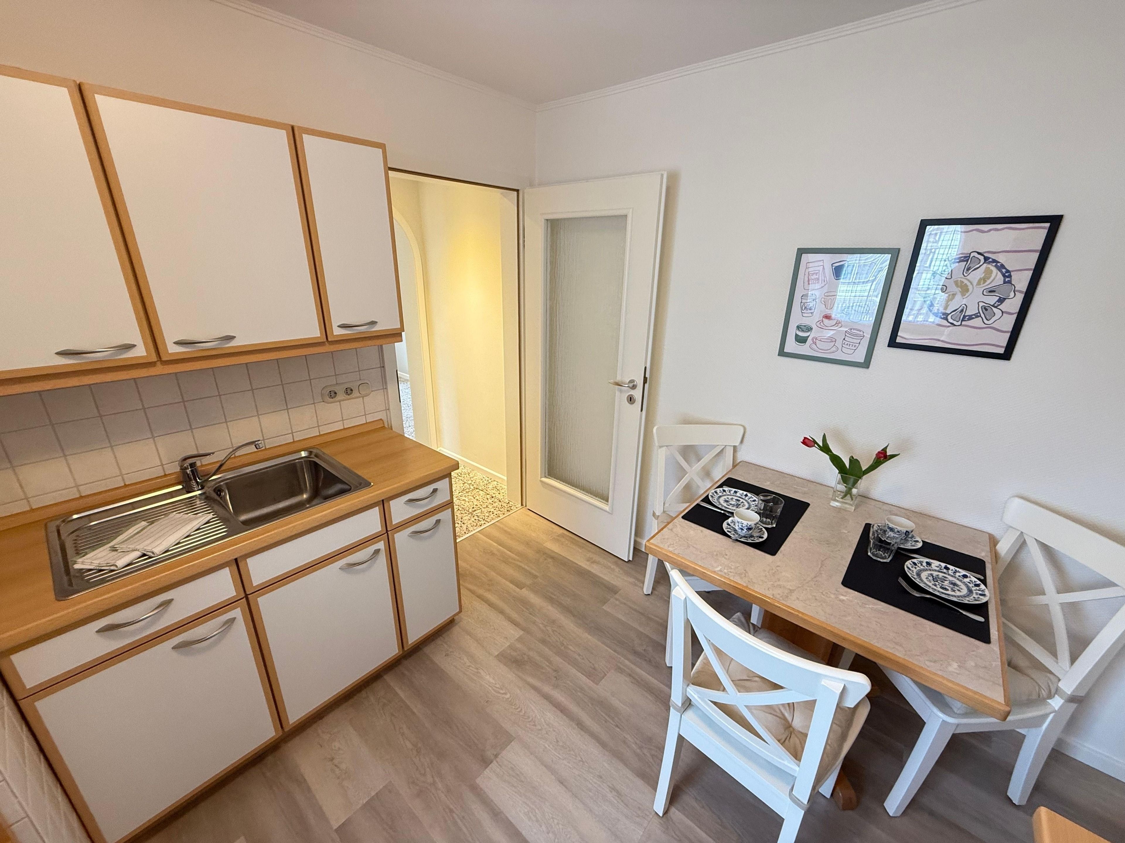 Die ca. 57 m² große 2-Zimmer-Wohnung im Erdgeschoss bietet ausreichend Platz für 1-3 Personen. Die Küche ist mit einem E-Herd und einem Kühlschrank mit Gefrierfach ausgestattet und lädt dazu ein, leckere Mahlzeiten auch im Urlaub zuzubereiten. Das helle und gemütliche Wohnzimmer, ausgestattet mit einem Fernseher, Couch und Sessel, liegt direkt an der Terrasse, wo Sie sonnige Stunden im Freien verbringen und den Garten nutzen können.