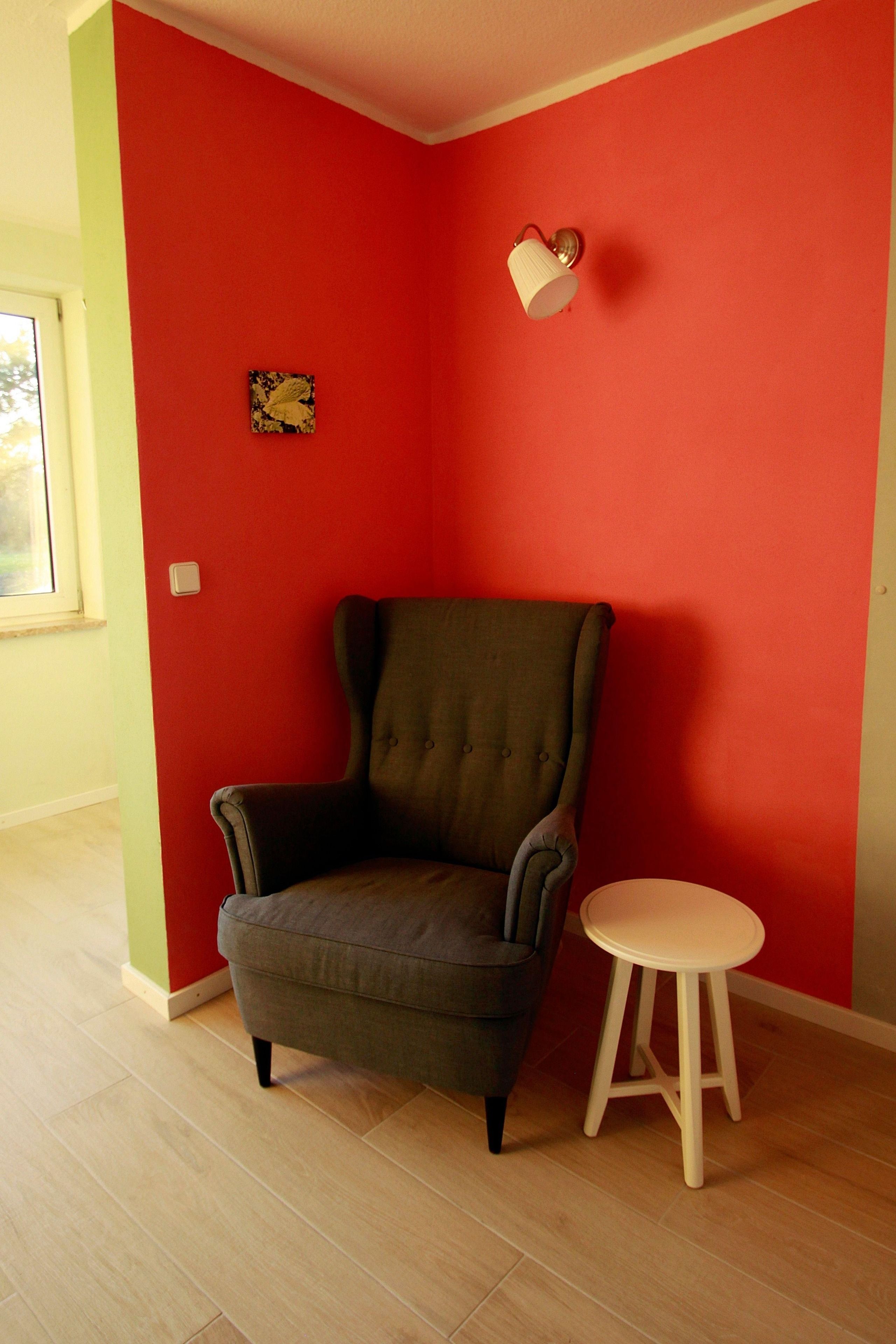 Sie liegt zum Garten ausgerichtet im Nebengebäude unseres Landhauses.