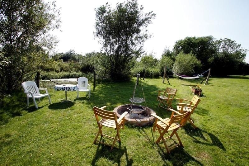 Im Garten steht Ihnen die Grill- und Feuerstelle zur Verfügung und auf der großen Wiese lässt es sich prima toben, Fußball spielen, in der Sandkiste buddeln, Schaukeln, Rutschen, auf der Slackline balancieren oder Trampolin springen.