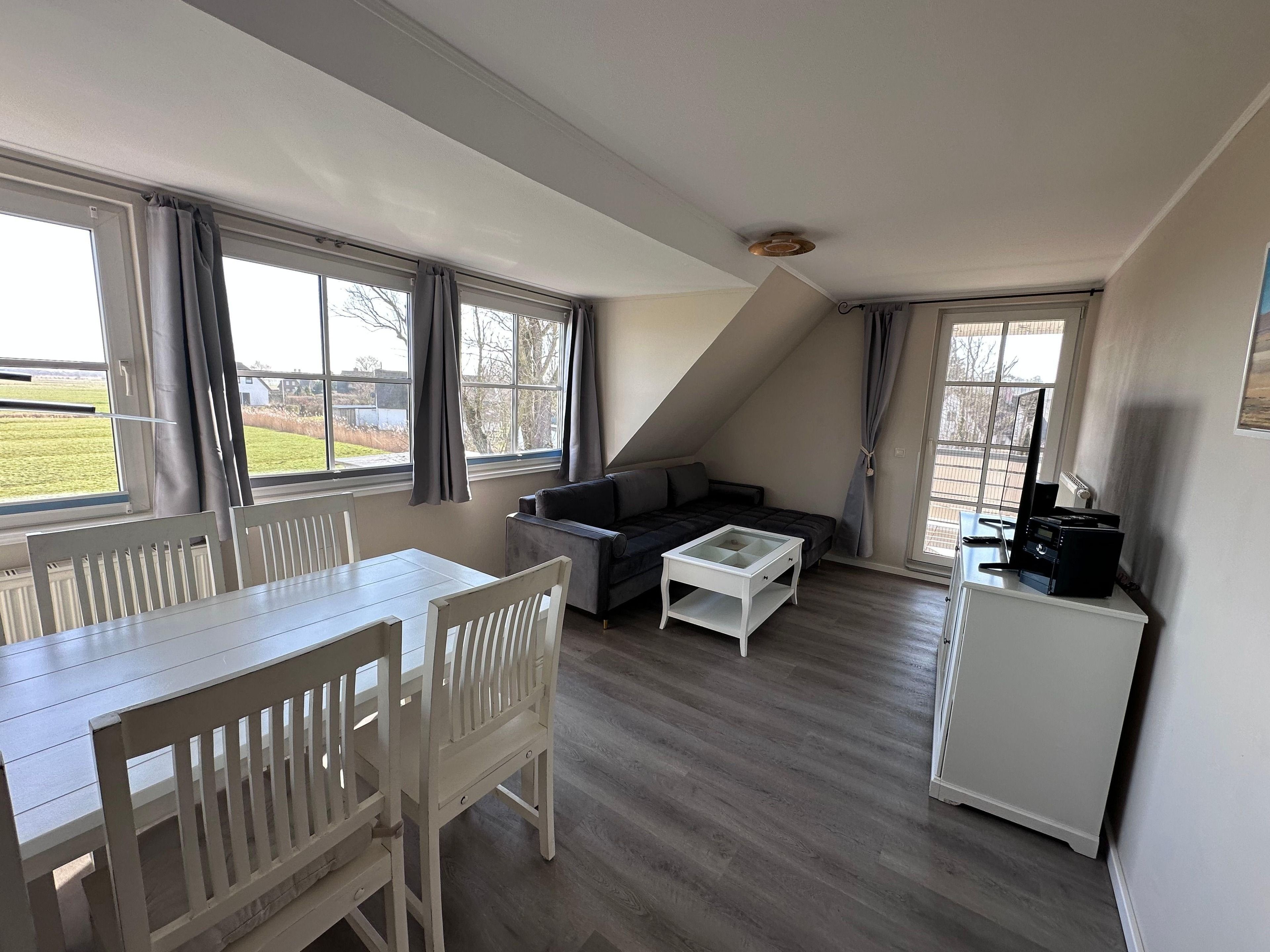 Ihr gemütliches Ferienhaus verfügt über 2 geräumige Schlafzimmer.Im großzügigen kombinierten Wohn- und Küchenbereich bereiten Sie Köstlichkeiten zu oder machen es sich einfach gemütlich. Starten Sie entspannt in den Tag im schönen Badezimmer, ein Gäste WC erhöht Ihren Wohnkomfort.Ihr sonniger Süd-Balkon mit Strandkorb und Gartenmöbeln, lädt zum entspannen ein.