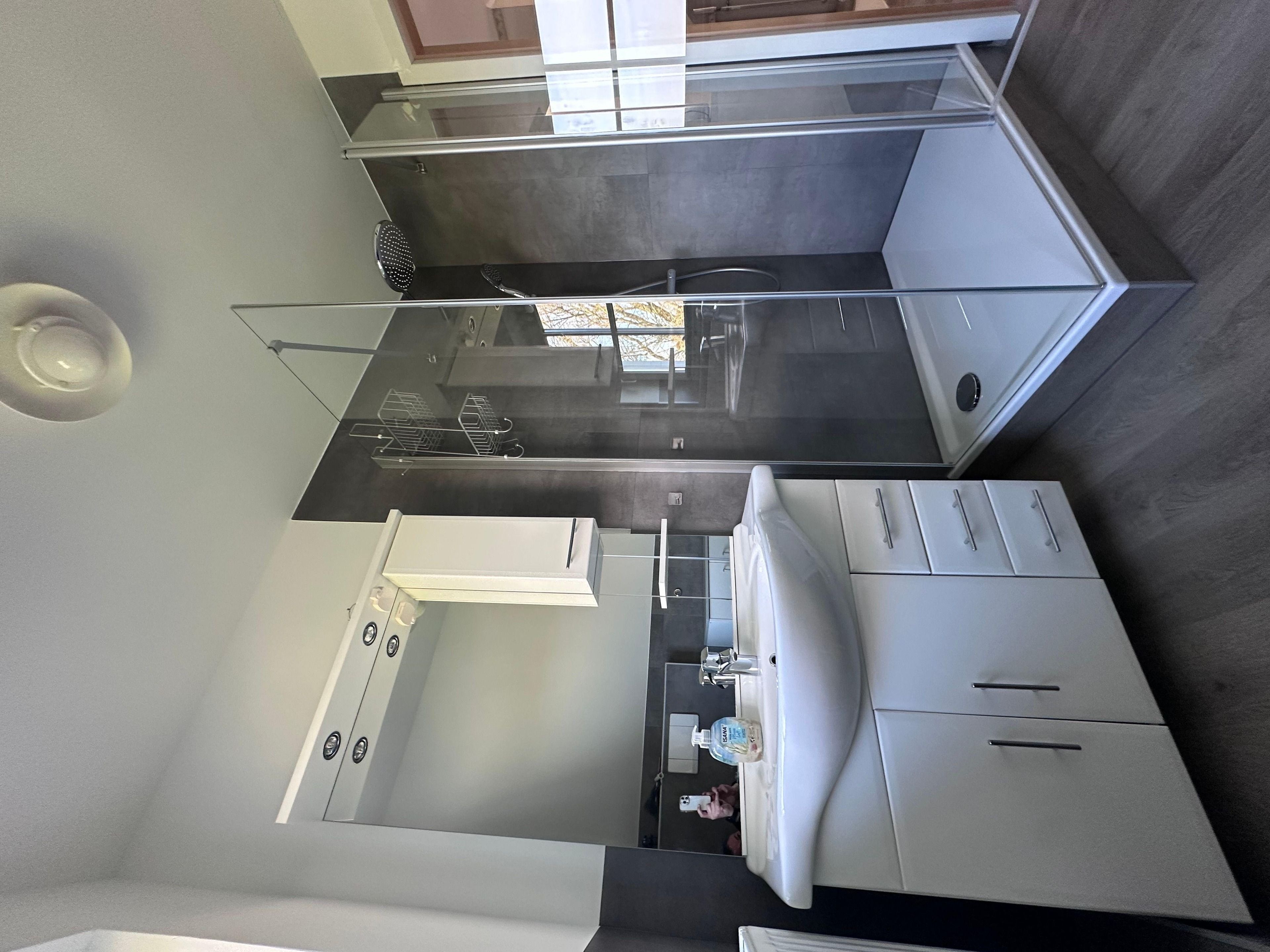 Die Haushälfte verfügt über eine Küche mit Gefrierschrank, Cerankochfeld und Mikrowelle und ein Gäste WC.