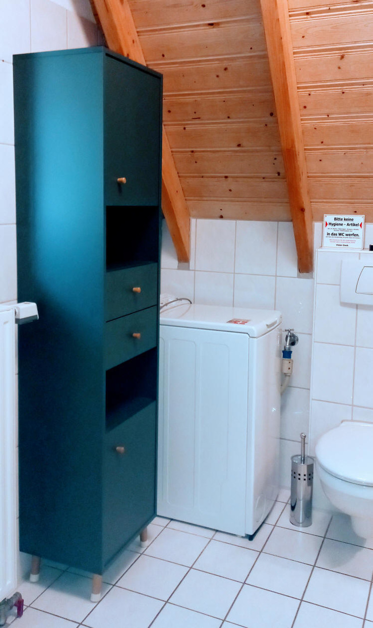 In dem Duschbad steht eine Waschmaschine zur kostenlosen Benutzung bereit. Auch
