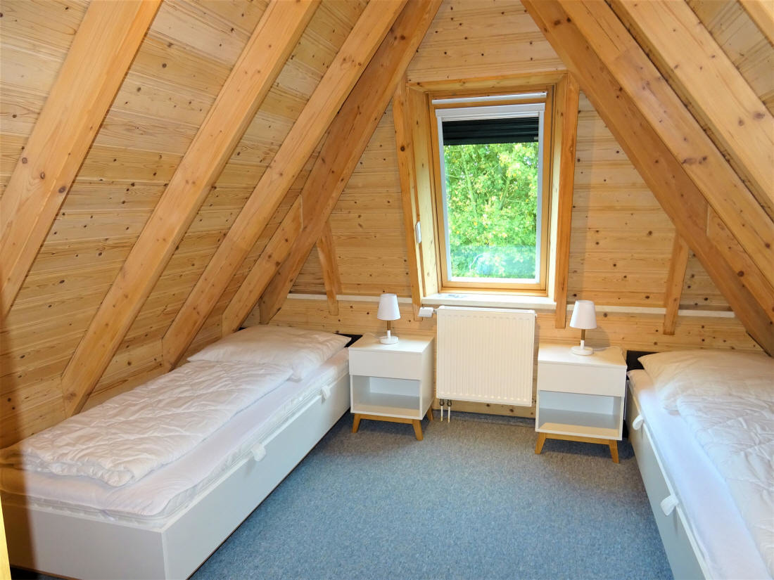 2. Schlafzimmer stehen 2 Einzelbetten ( 90x200 cm). Auch diese Zimmer sind mit Rollläden zur 100% Verdunkelung ausgestattet. Zusätzlich befindet sich ein weiteres WC mit Waschgelegenheit ( Warmwasser Beuler )