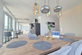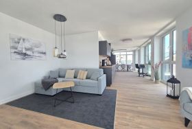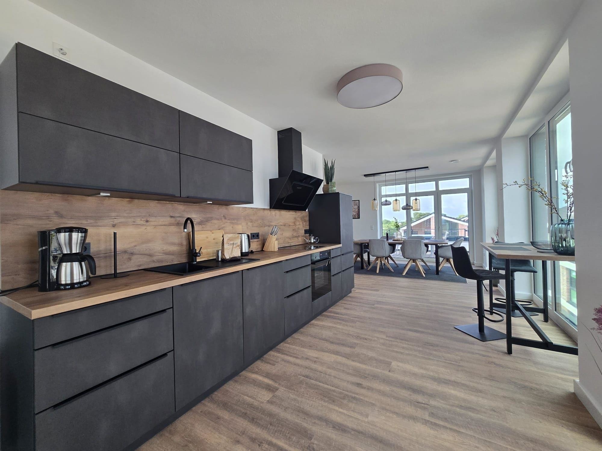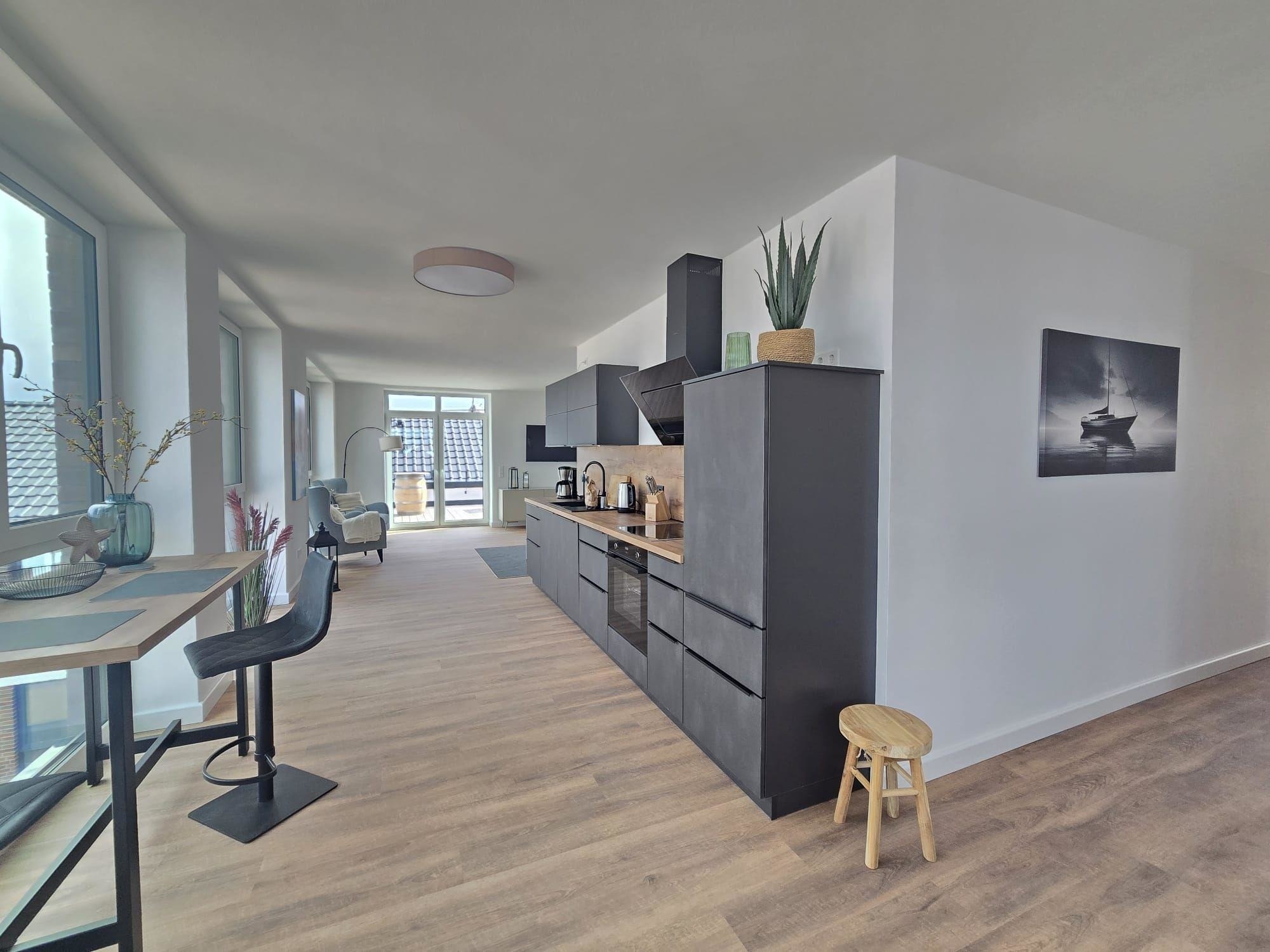 Die Ferienwohnung bietet eine moderne und allergikergeeignete Ausstattung für einen komfortablen Aufenthalt. Sie verfügt über zwei Schlafzimmer, eines mit einem Doppelbett und eines mit zwei Einzelbetten, sowie ein Wohnschlafzimmer mit einer Schlafcouch. Die offene Küche ist vollständig ausgestattet mit einem Geschirrspüler, Elektro- und Gasherd, Backofen, Mikrowelle, Kühlschrank, Kaffeemaschine und Toaster, sodass die Zubereitung von Mahlzeiten problemlos möglich ist. Das Badezimmer mit Fenster bietet eine Dusche und einen Haartrockner. Zur Unterhaltung stehen ein TV und kostenloses WLAN zur Verfügung. Praktische Extras wie eine Waschmaschine, ein Parkplatz, ein Fahrstuhl sowie ein Starterset mit Reinigungsmitteln, Seife und Toilettenpapier runden das Angebot ab. Der gemütliche Esstisch und die komfortablen Möbel, einschließlich Sofa und Sessel, laden zum Entspannen ein. Sicherheitsmerkmale wie Rauchmelder sorgen für ein sicheres Wohngefühl.