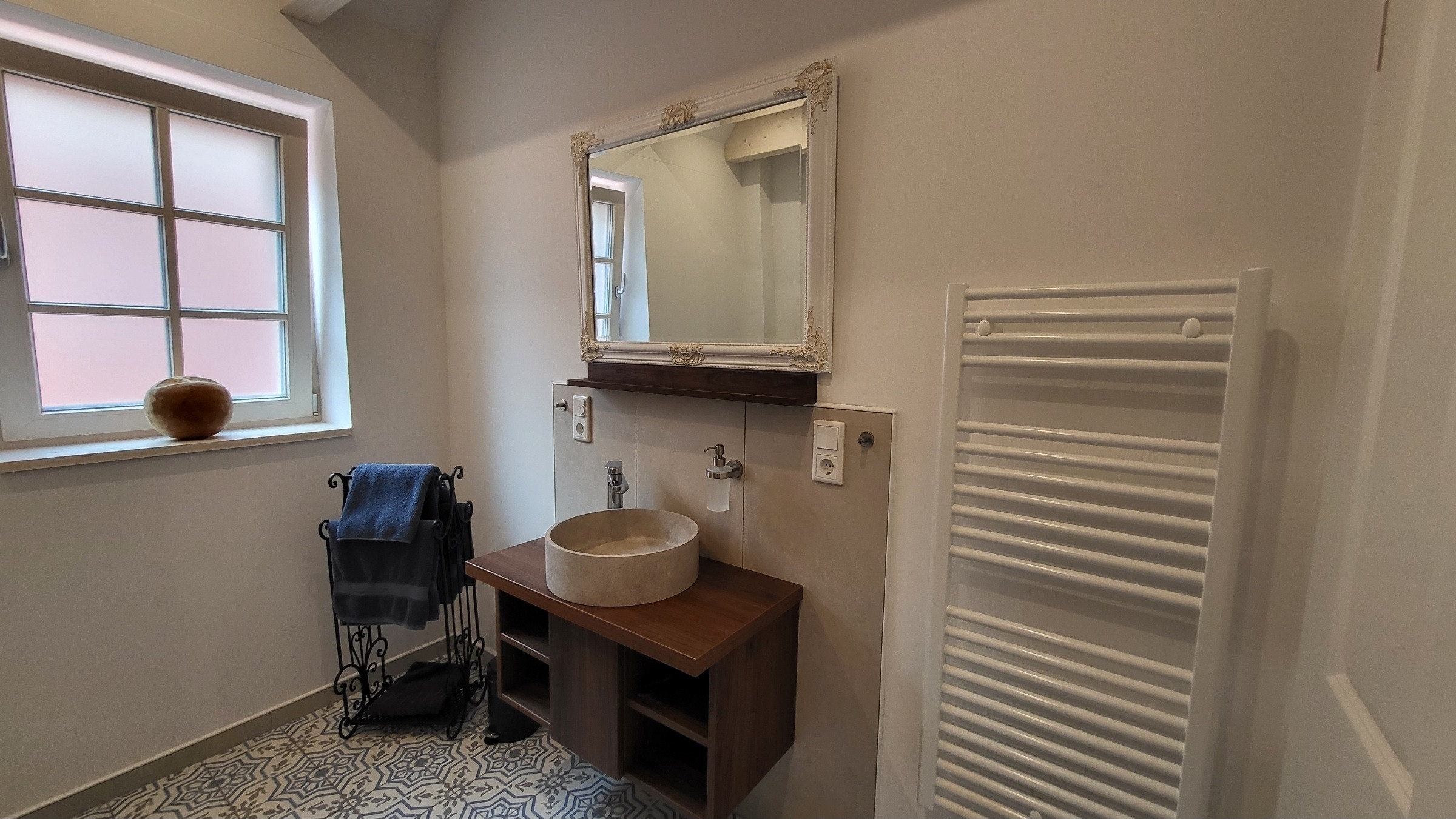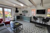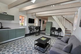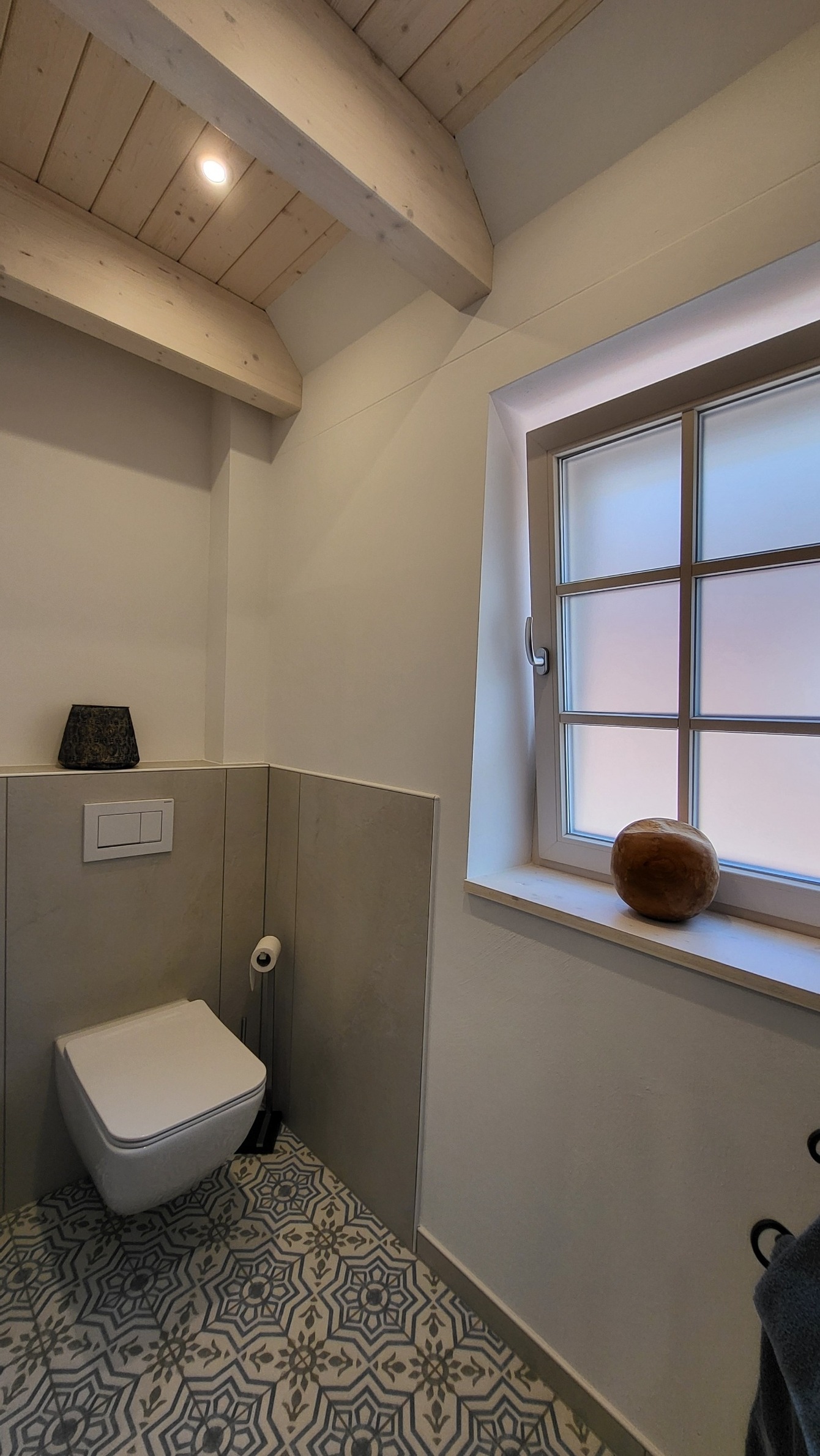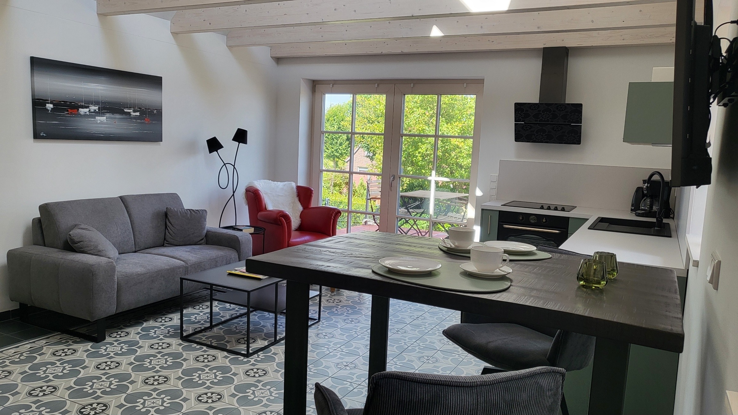 Die moderne und liebevolle Einrichtung erfüllt auch höchste Ansprüche. Die 55qm² Wohnfläche sind aufgeteilt in Wohnzimmer mit einer Sitzbar und komplett ausgestatteter Küche, Flur, Badezimmer mit ebenerdiger Walk-In Dusche, Handtuchwärmer, 1 Schlafzimmer unten mit einem Bockspringbett 180X200m, einer Galerie mit 2 Einzelbetten.
