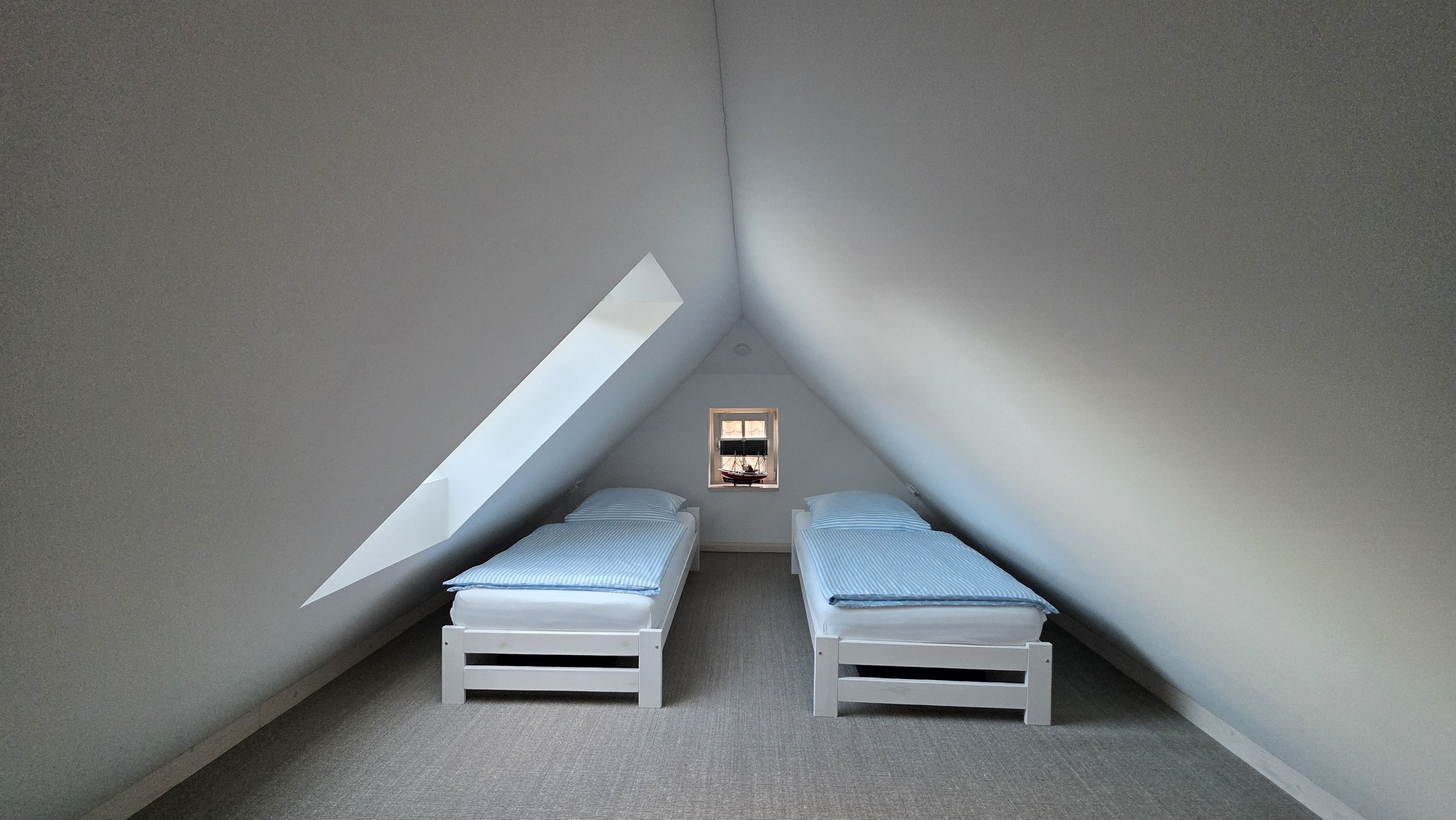 Die Ausstattung umfasst ein gemütliches Wohnzimmer, welches offen zur Küchenzeile gestaltet ist und eine praktische Sitzbar besitzt. Im Erdgeschoss befindet sich ein großzügiges Schlafzimmer mit einem komfortablen Boxspringbett (180 x 200 cm). Für Unterhaltung sorgen ein TV mit Wandhalterung sowie kostenfreies WLAN. Die voll ausgestattete Küche lässt keine Wünsche offen. Der lichtdurchflutete Wohnbereich bietet einen offenen Blick in den Giebel und lädt zum Verweilen ein. Für eine angenehme Atmosphäre sorgen Fußbodenheizung und eine moderne Wärmepumpe. Fliegengitter schützen vor ungebetenen Gästen, während das Badezimmer mit einer bequemen Walk-in-Dusche, WC und einem Handtuchwärmer ausgestattet ist. Im Obergeschoss befindet sich eine Galerie mit zwei Einzelbetten und freiem Blick in den Wohnraum. Die Sonnenterrasse lockt mit Seitenmarkisen, Sichtschutz und einer Lounge Sitzgruppe. Der eingezäunte Garten bietet Privatsphäre, ein PKW-Stellplatz ist vorhanden. Zusätzlich steht ein Gartenhaus zur Verfügung, in dem mitgebrachte Fahrräder sicher abgestellt und geladen werden können.