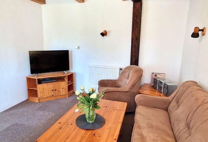 Die Ferienwohnung bietet eine stilvolle Unterkunft, die optimal für einen erholsamen Aufenthalt geeignet ist. Sie verfügt über zwei gemütliche Schlafzimmer, ausgestattet mit je einem Doppelbett, die eine Ruheoase schaffen. Die separate Küche ist bestens ausgestattet mit einem Elektro-/Gasherd, Backofen, Mikrowelle, Kühlschrank, Kaffeemaschine und Toaster – ideal für die Zubereitung von Mahlzeiten. Ein Duschbad mit Fenster sowie ein zusätzliches Gäste-WC sorgen für Komfort. Die helle und geräumige Wohnfläche umfasst einen Esstisch, ein Sofa und einen Sessel, während moderne Annehmlichkeiten wie WLAN, TV und eine HiFi-Anlage für Unterhaltung sorgen. Die Wohnung ist allergikergeeignet und bietet durch Heizung und einen Parkplatz zusätzlichen Komfort. Geschirr, Besteck, ein Wasserkocher und ein Wäscheständer sind ebenfalls vorhanden, sodass nichts für einen entspannten Aufenthalt fehlt.