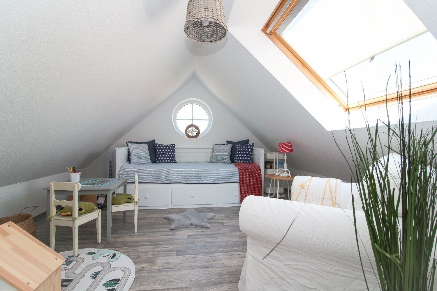 Der ausgebaute Spitzboden steht als ruhiger Rückzugsort zum lesen und entspannen zur Verfügung oder dient als Spielzimmer für Kinder.