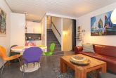 Es verfügt über ein gemütliches Schlafzimmer mit einem großen Doppelbett und direktem Balkonzugang im OG und über ein behagliches Schlafzimmer mit zwei Einzelbetten und einem geschmackvoll eingerichteten Wohnzimmer mit einer bestens ausgestatteten offenen Küche im EG.