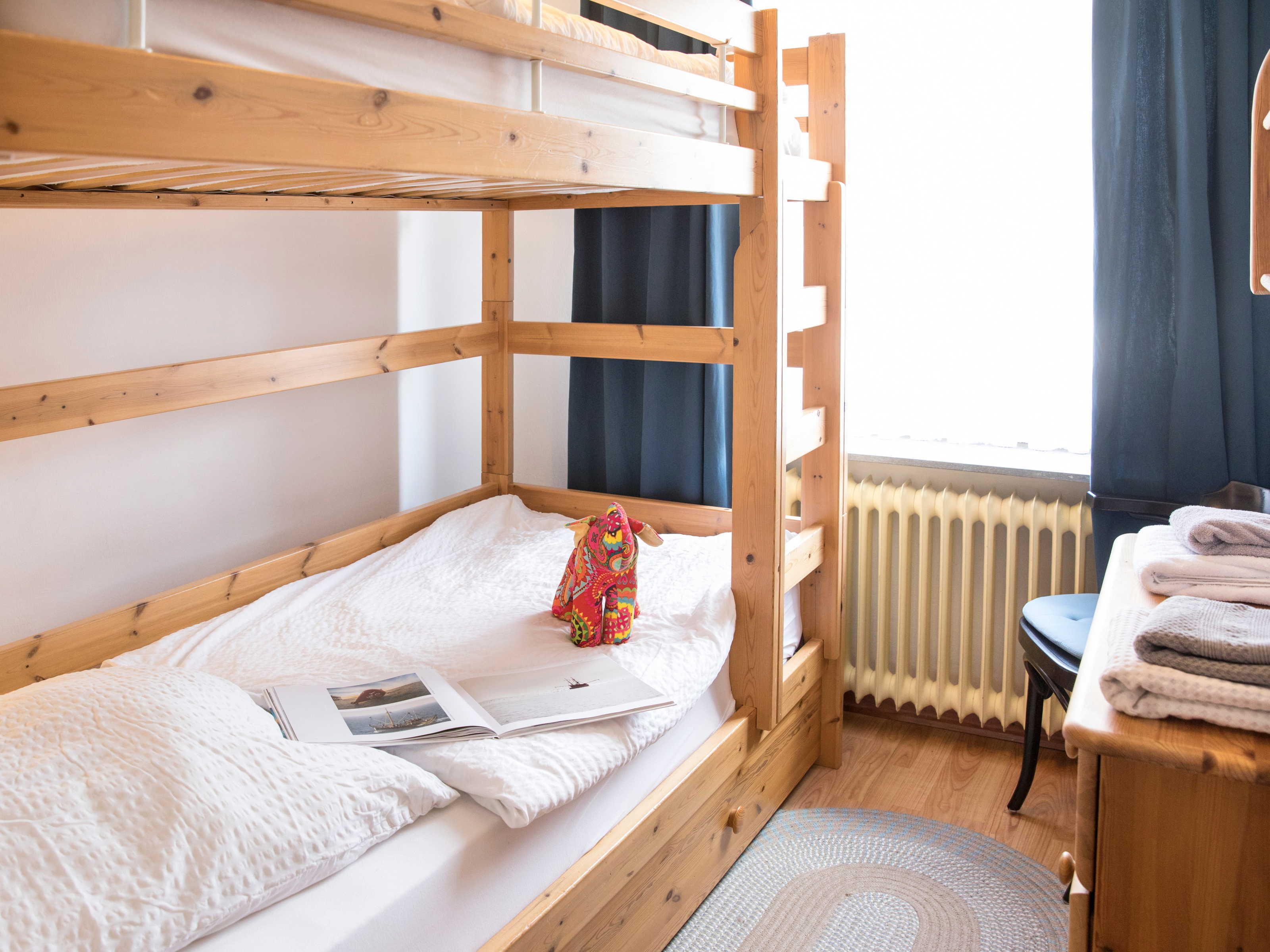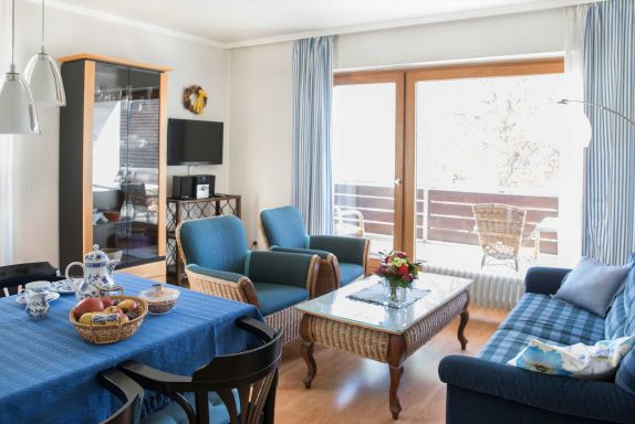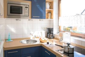 Die 53 qm große Nichtraucher-Wohnung im 1. OG für bis zu 5 Personen besteht aus einem Wohnraum mit bequemer Couch, einem Schlafraum mit Doppelbett (ohne Fußbrett) und Babybett, einem Kinderzimmer mit Etagenbetten, Küche mit Spülmaschine, Ceranfeld mit 4 Kochstellen, Mikrowelle und Kühlschrank mit 3-Sterne-Gefrierfach. Duschbad/WC. Die Wohnung ist komplett mit Laminat ausgelegt. Die möblierte Loggia ist nach Süden gerichtet. Die Wohnung befindet sich in der 1. Etage eines zweigeschossigen Ferienhauses im Kurviertel von Büsum (Meeresluftzone), 200 m von Grün- und Sandstrand und dem Nationalpark Wattenmeer entfernt. Zum Zentrum sind es ca. 15 Gehminuten.